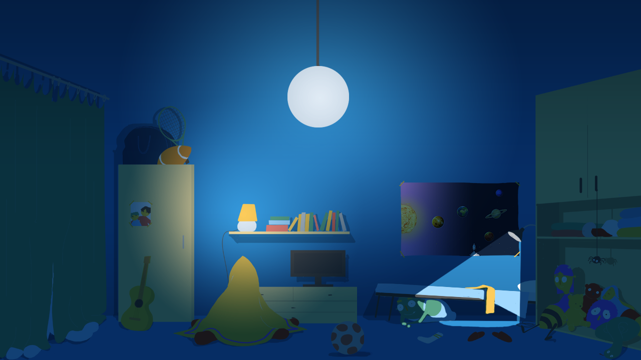Trova tutto quello che è fuori posto nella stanza e impara a distinguere sopra e sotto.