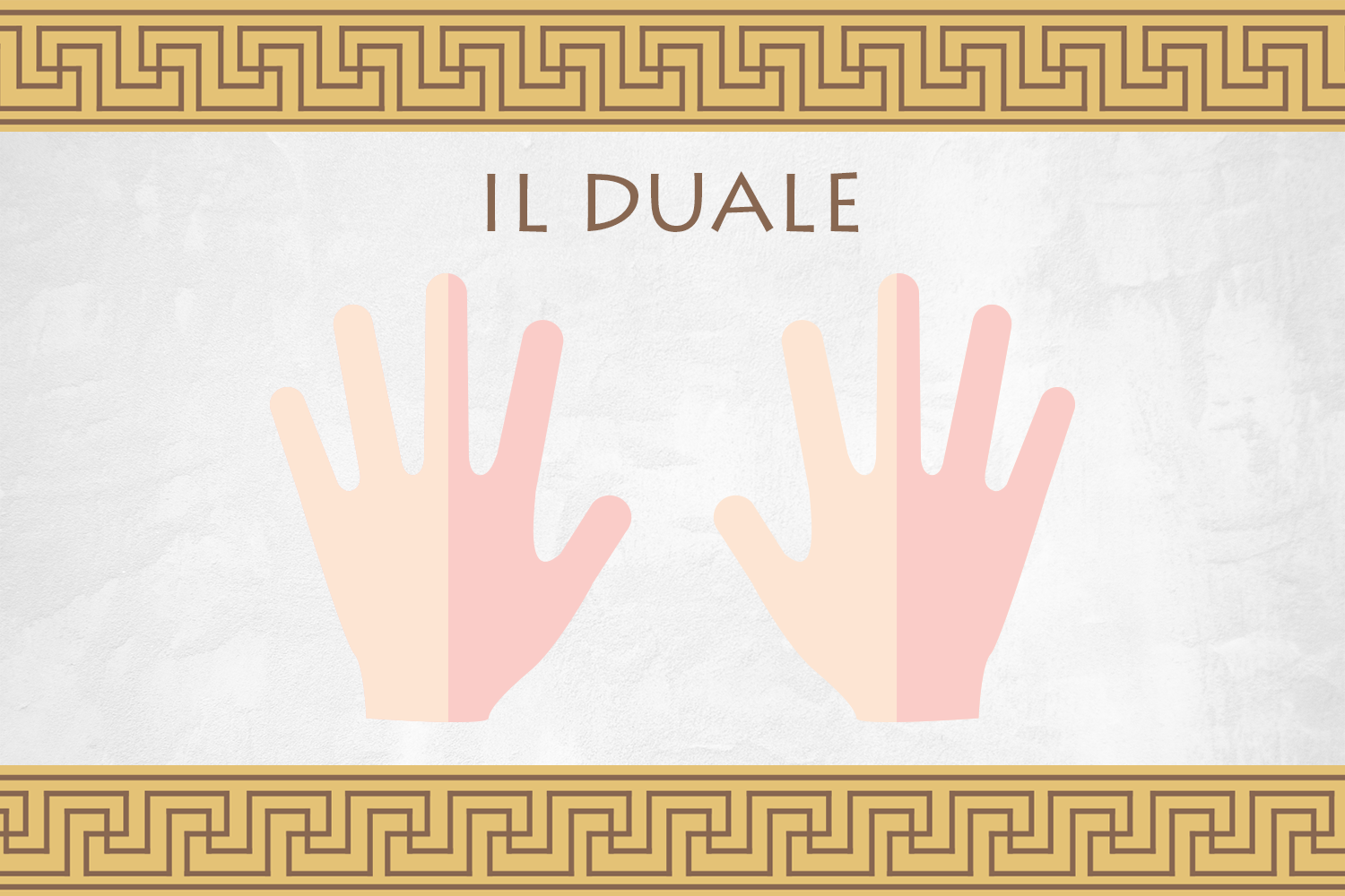 E se la distinzione fra uno e molti non bastasse? I Greci una soluzione l’avevano trovata: oltre al singolare e al plurale il greco antico aveva infatti anche il numero duale, usato per indicare coppie di cose, animali o persone. Due mani, due buoi che tirano l’aratro o anche due innamorati. Quale modo migliore per esprimere un tutt’uno formato da due unità?