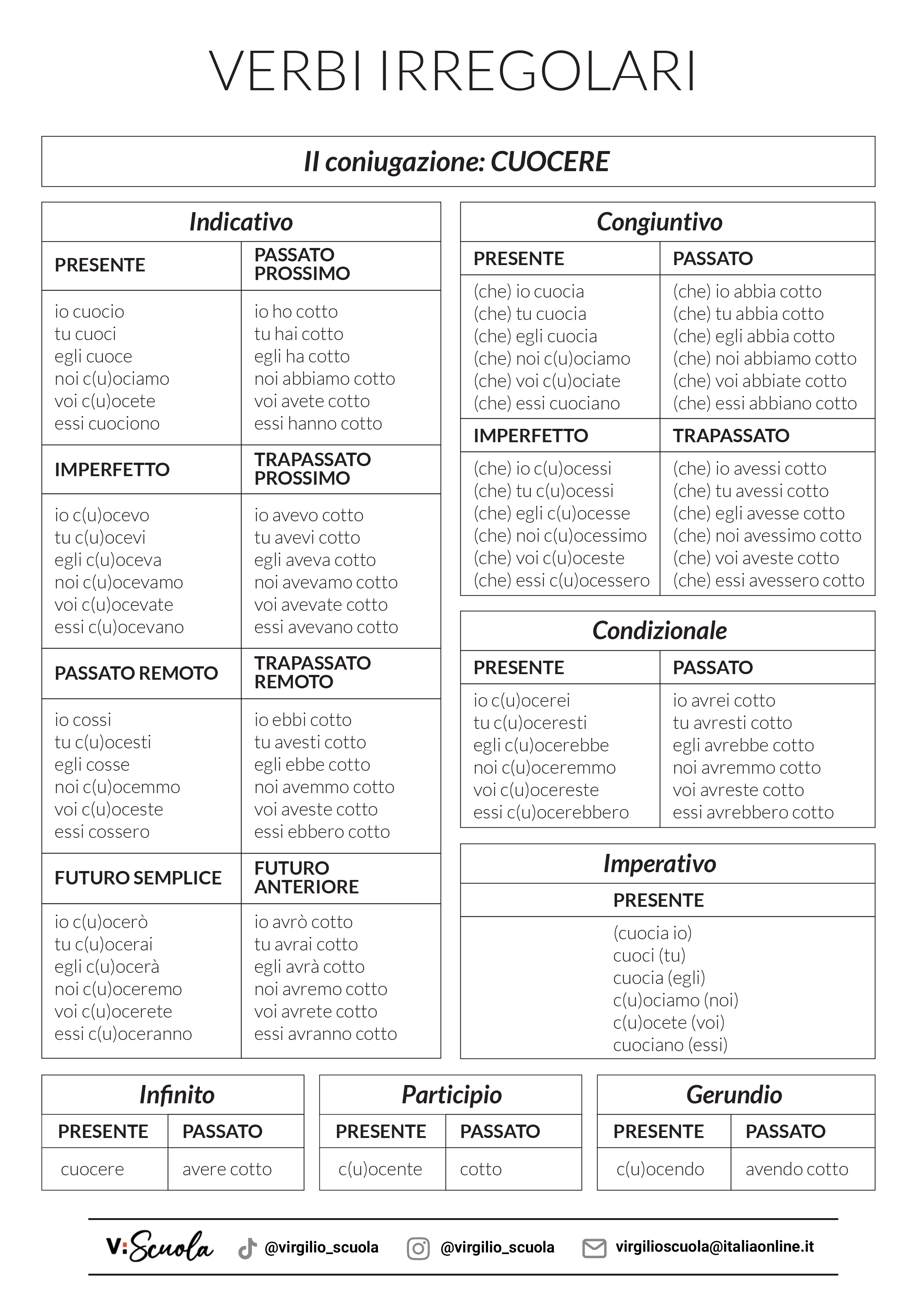 I verbi irregolari cuocere e piacere 2 Agosto 2023 - Ultimo Aggiornamento: 3 Dicembre 2023 Primaria Grammatica italiana I verbi irregolari cuocere e piacere