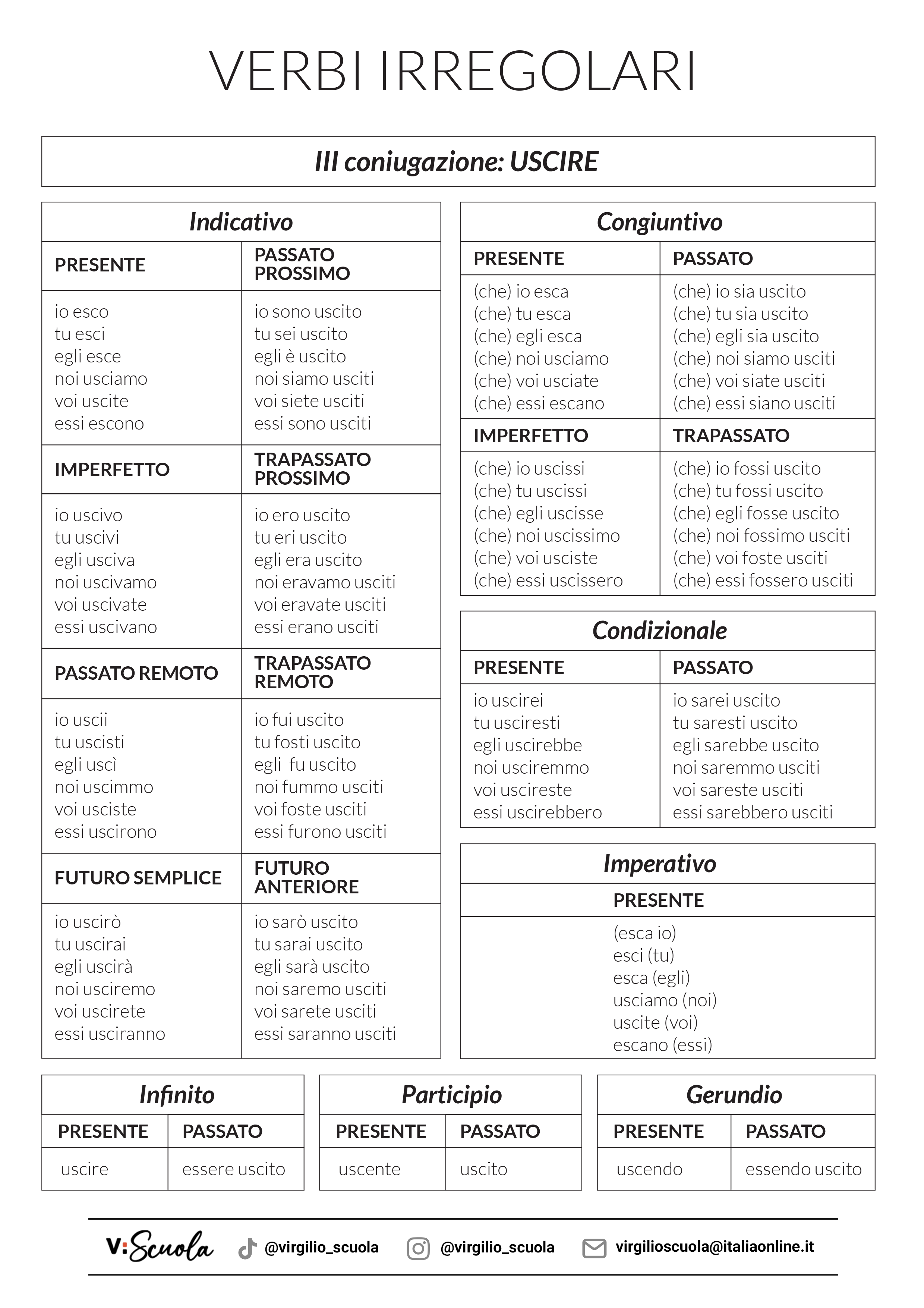 I verbi irregolari uscire e venire 2 Agosto 2023 - Ultimo Aggiornamento: 3 Dicembre 2023 Primaria Grammatica italiana I verbi irregolari uscire e venire