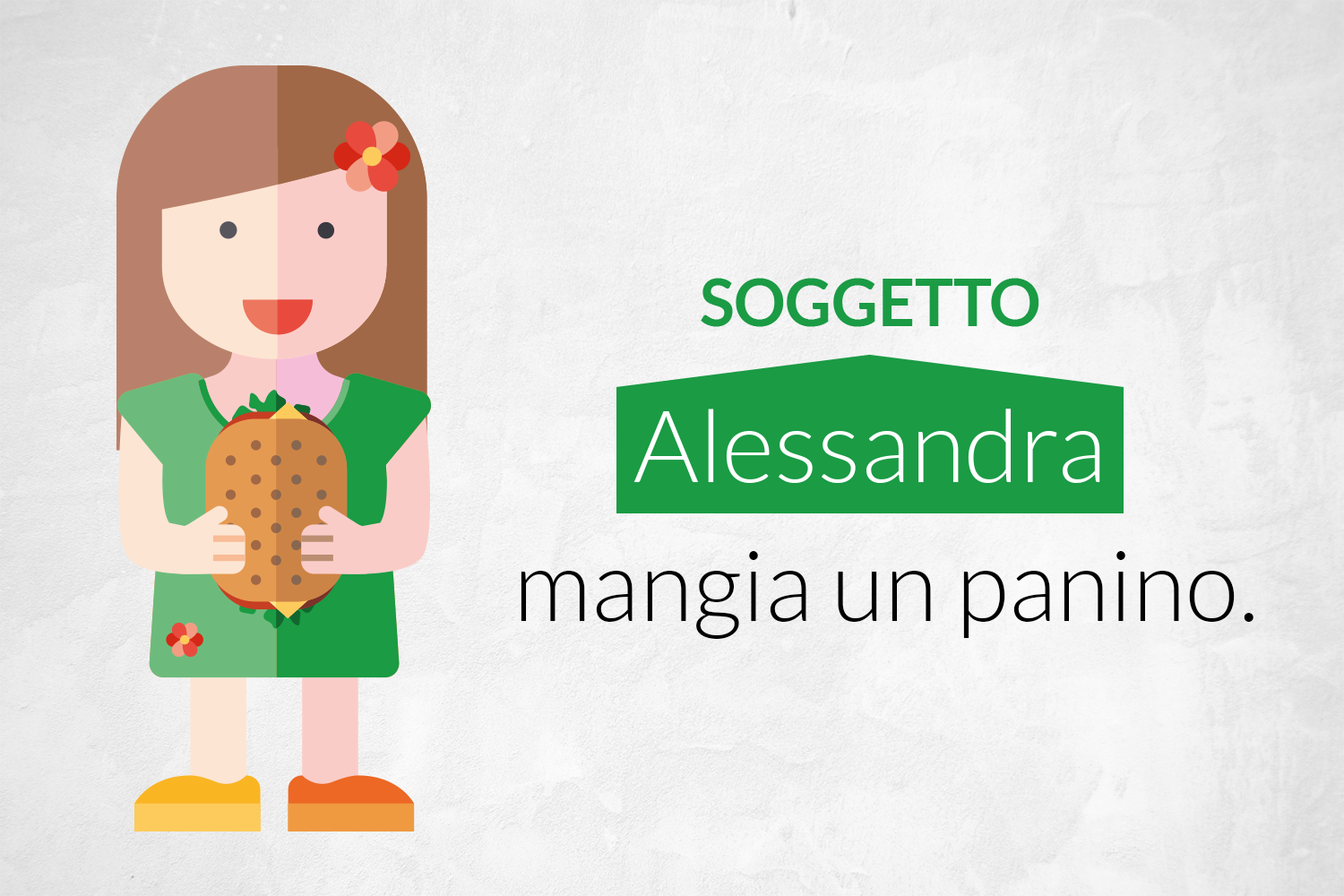 Non necessariamente compie l’azione (Alessandra mangia un panino), ma può anche subirla (Il pullman è guidato dall’autista). In generale è la cosa, l’animale o la persona di cui si dice qualcosa, chi è, com’è, cosa fa, quali sono le sue caratteristiche…