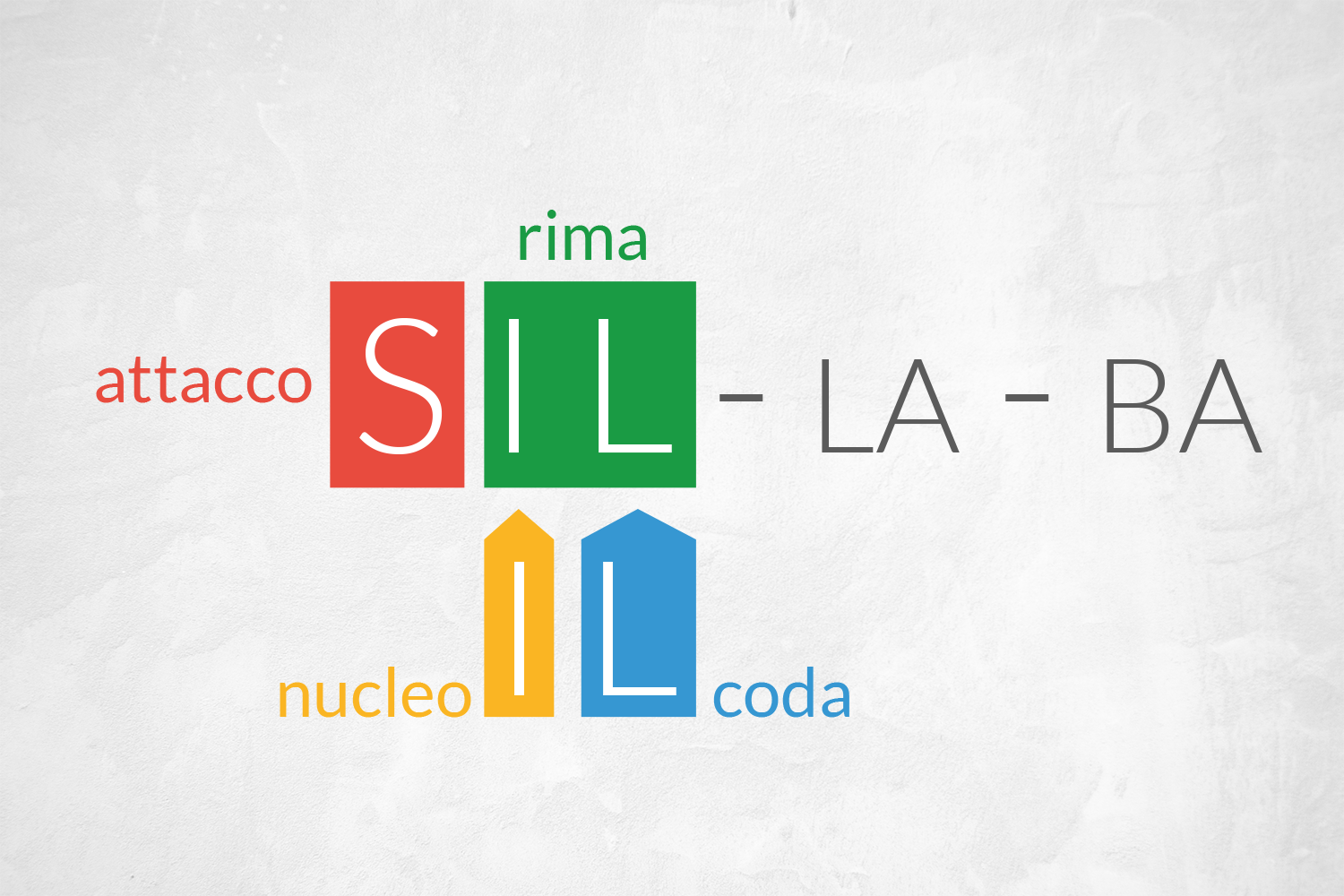 - CVC- : gram-ma-ti-ca (dove gram è una sillaba con attacco, nucleo e coda)