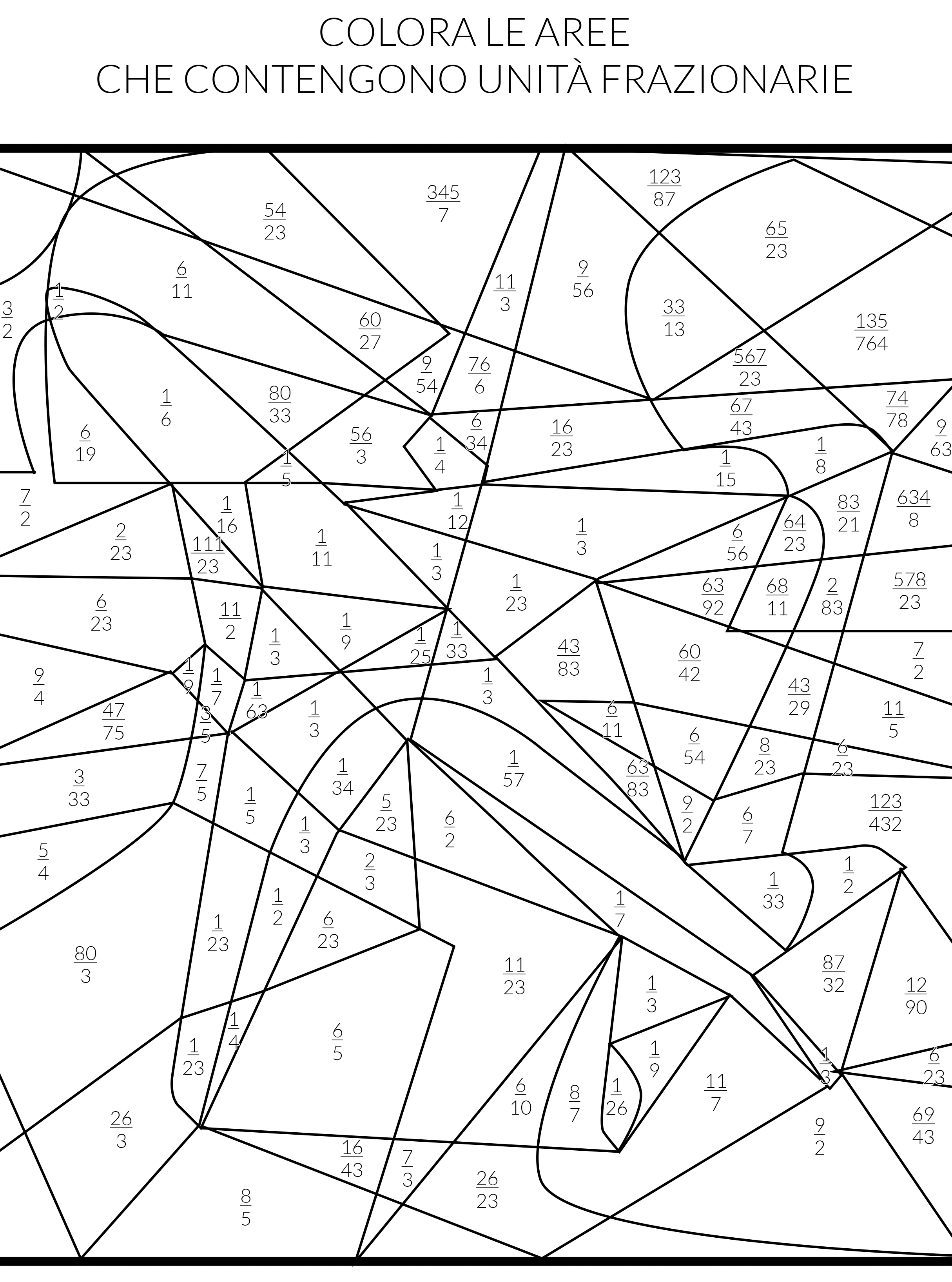 Con la scheda vogliamo ripassare tutti i concetti toccati nella lezione, in particolare le unità frazionarie e le frazioni decimali. Scarica qui la scheda e scopri quale disegno è nascosto dalle frazioni: .