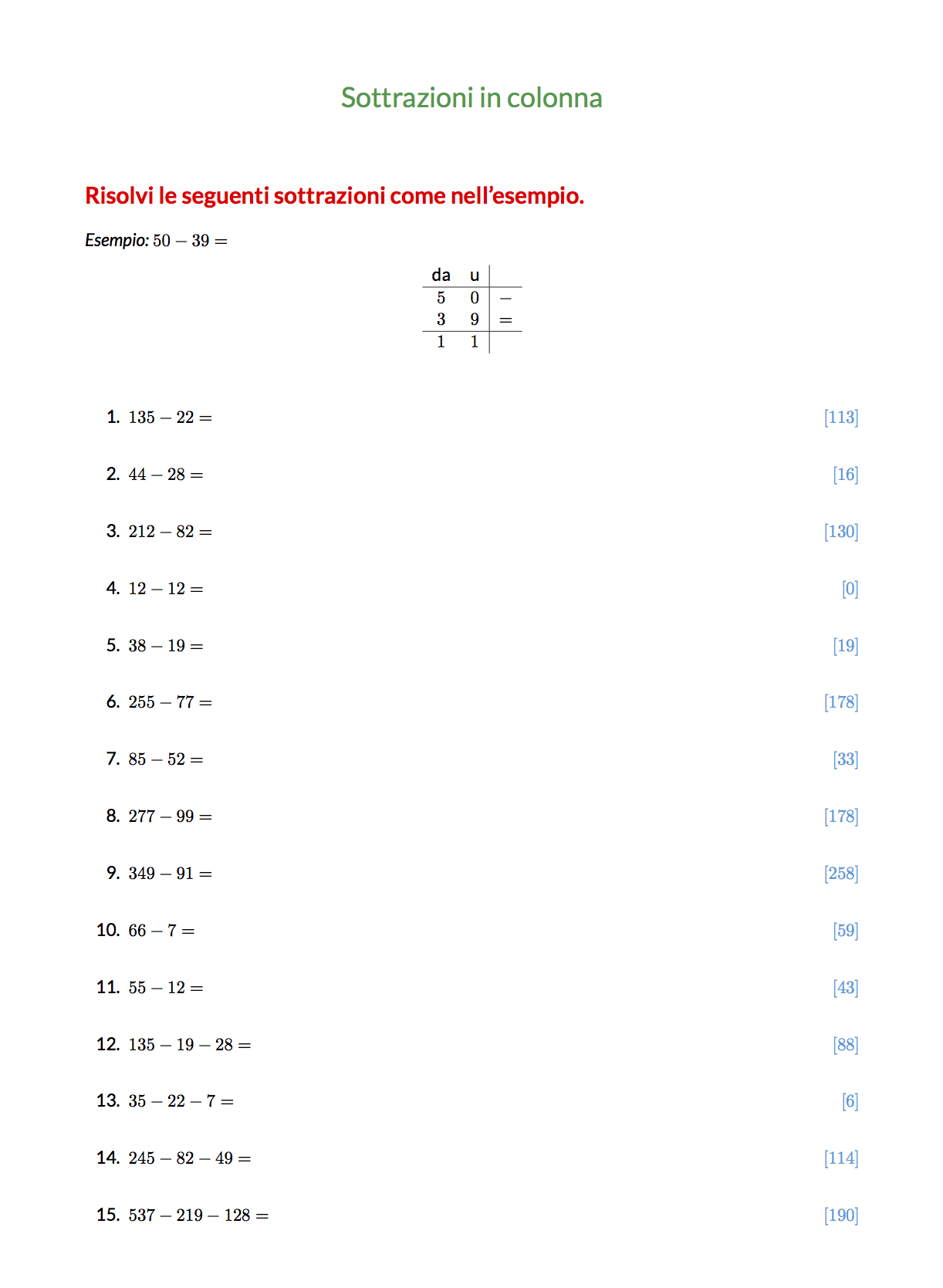 - Sottrazioni fino al 100 e al 1000
