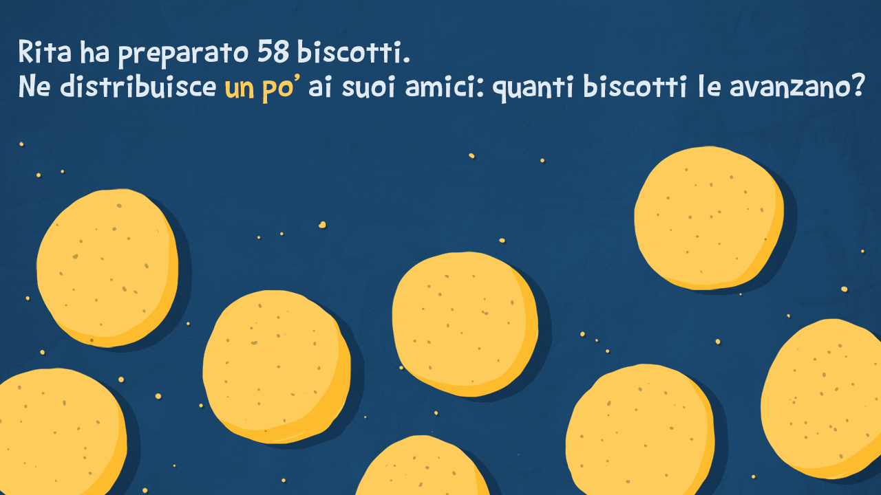 Sappiamo quanti biscotti ha preparato Rita, ma non sappiamo quanti ne distribuisce ai suoi amici: un po’ non è un dato numerico utile. Ci manca un’informazione!