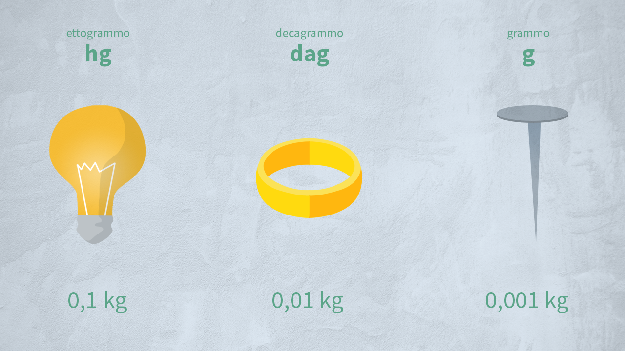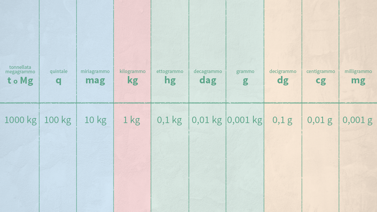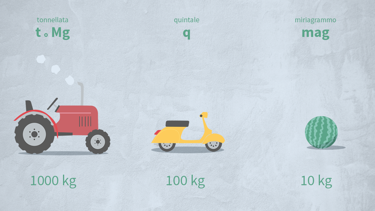Attenzione! Con queste unità di misura, misuriamo la massa di un oggetto. Nel linguaggio comune lo chiamiamo peso, ma sono due cose diverse!