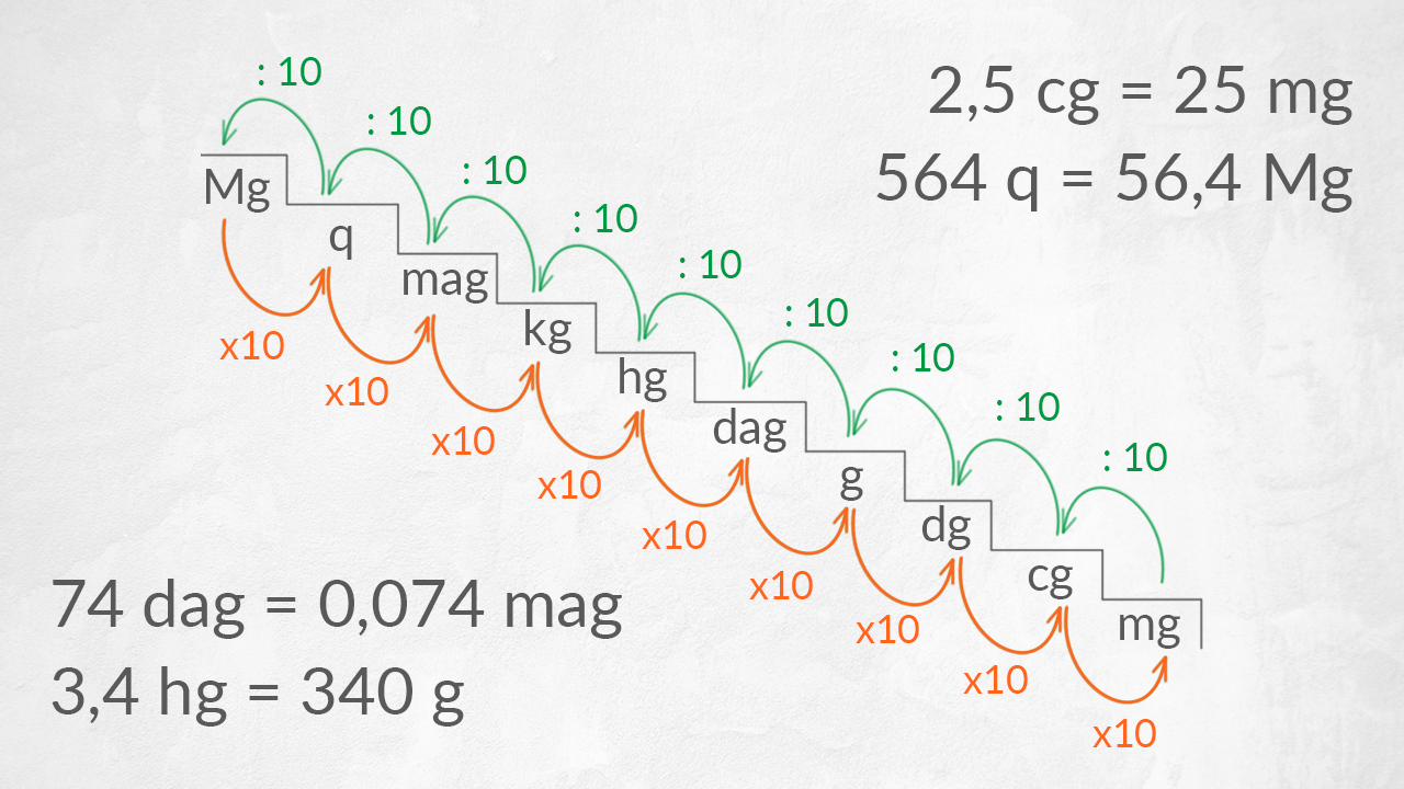 Ogni unità di misura è 10 volte più piccola di quella alla sua sinistra, mentre è 10 volte più grande di quella alla sua destra.