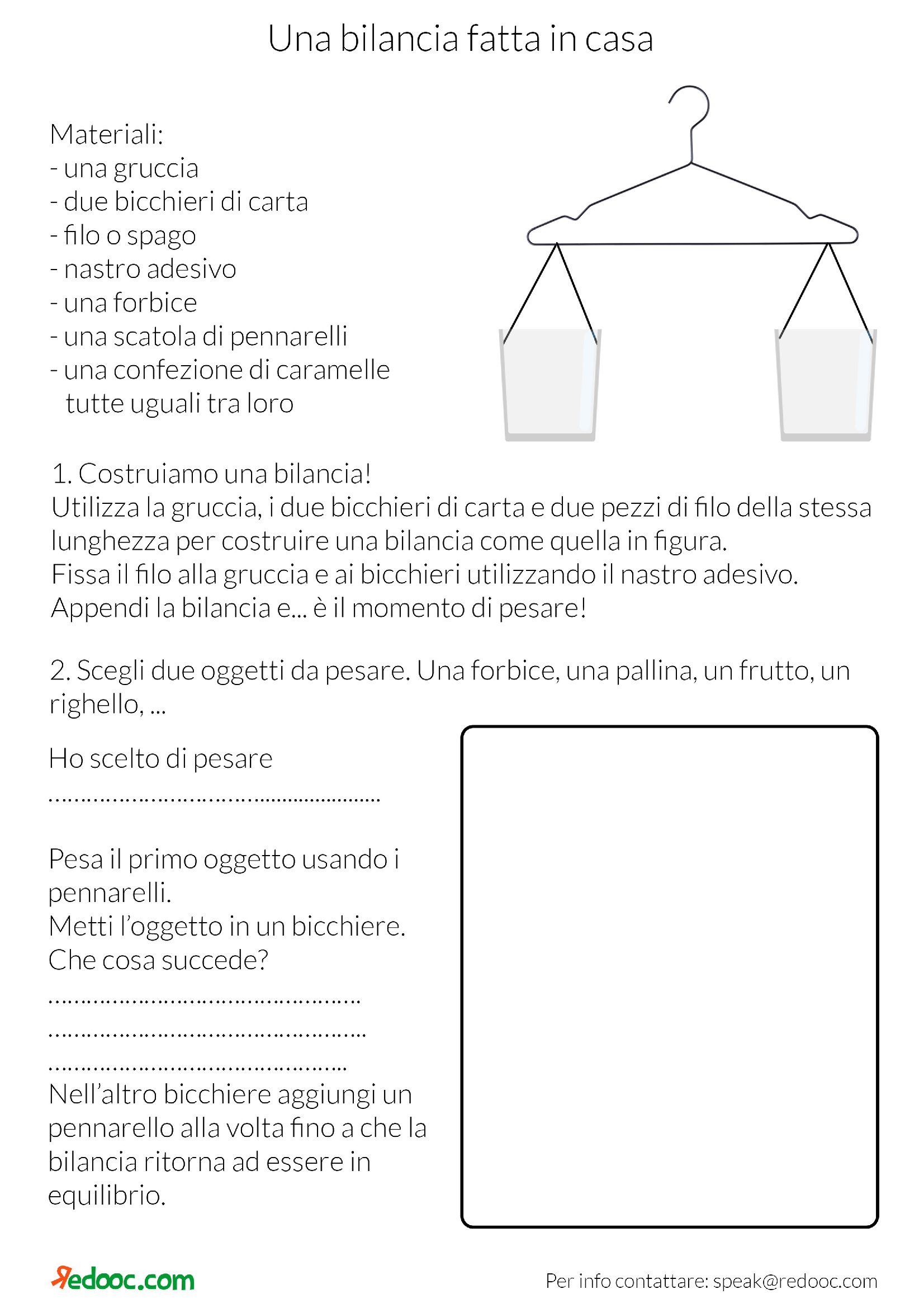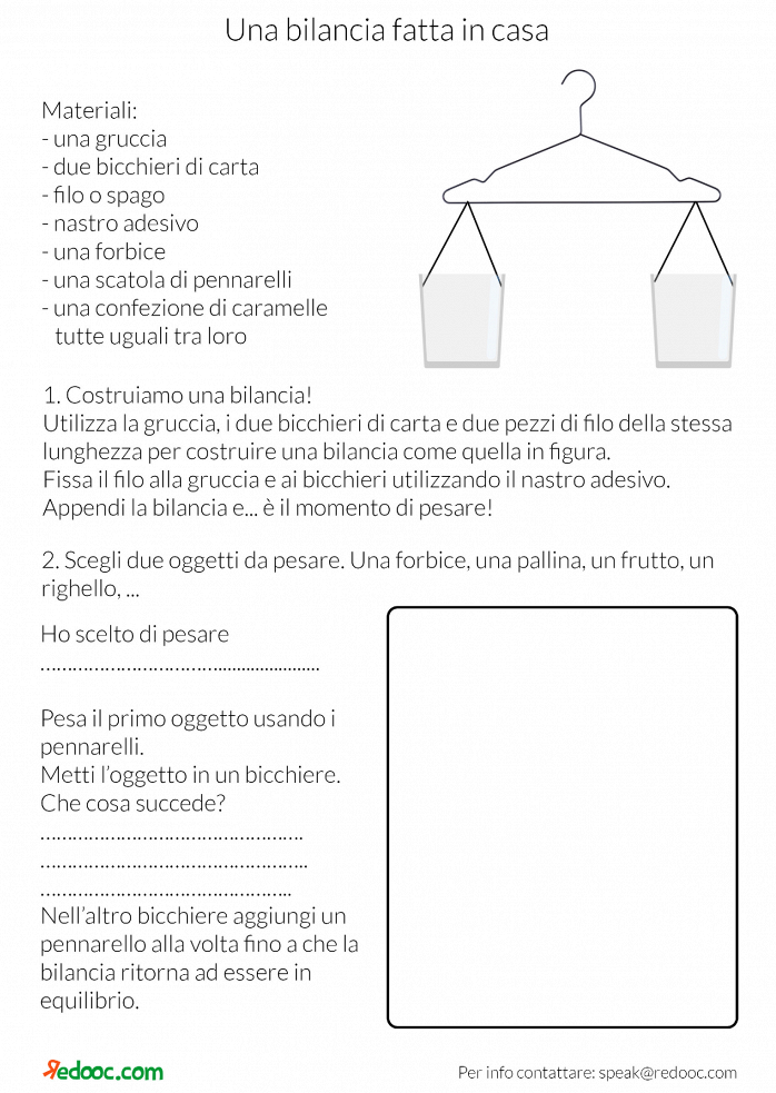 Come prendere confidenza con le misure di massa? Proviamo a costruire una bilancia: bastano pochi materiali e saremo capaci di confrontare le masse di tutti gli oggetti.