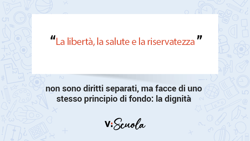 La libertà, la salute e la riservatezza non sono diritti separati, ma facce di uno stesso principio di fondo: la dignità. Quando questi diritti sono riconosciuti, protetti e resi effettivi, allora la Repubblica realizza davvero la sua funzione più alta: tutelare la persona nella sua interezza, e garantire a ciascuno la possibilità di vivere con pienezza, autonomia e rispetto