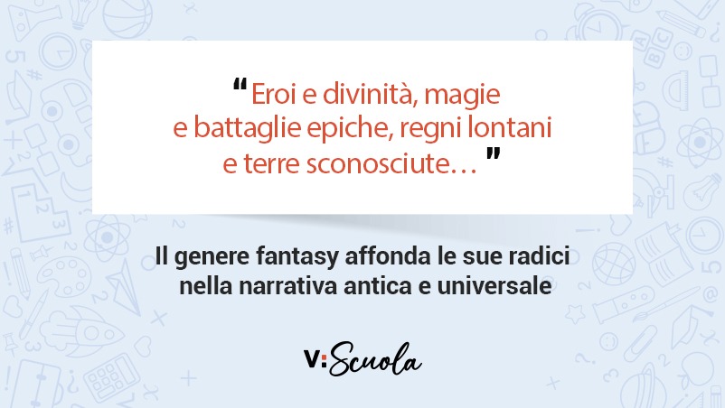 L’origine del fantasy è strettamente legata al mito. Le mitologie delle varie civiltà antiche sono piene di racconti che evocano l’elemento fantastico, il soprannaturale e il miracoloso. Le narrazioni mitologiche non solo raccontano storie di dei e di eroi, ma spesso ci offrono anche spiegazioni simboliche e morali delle forze naturali e sociali, configurando il mondo in modo da unire l’umano al divino.