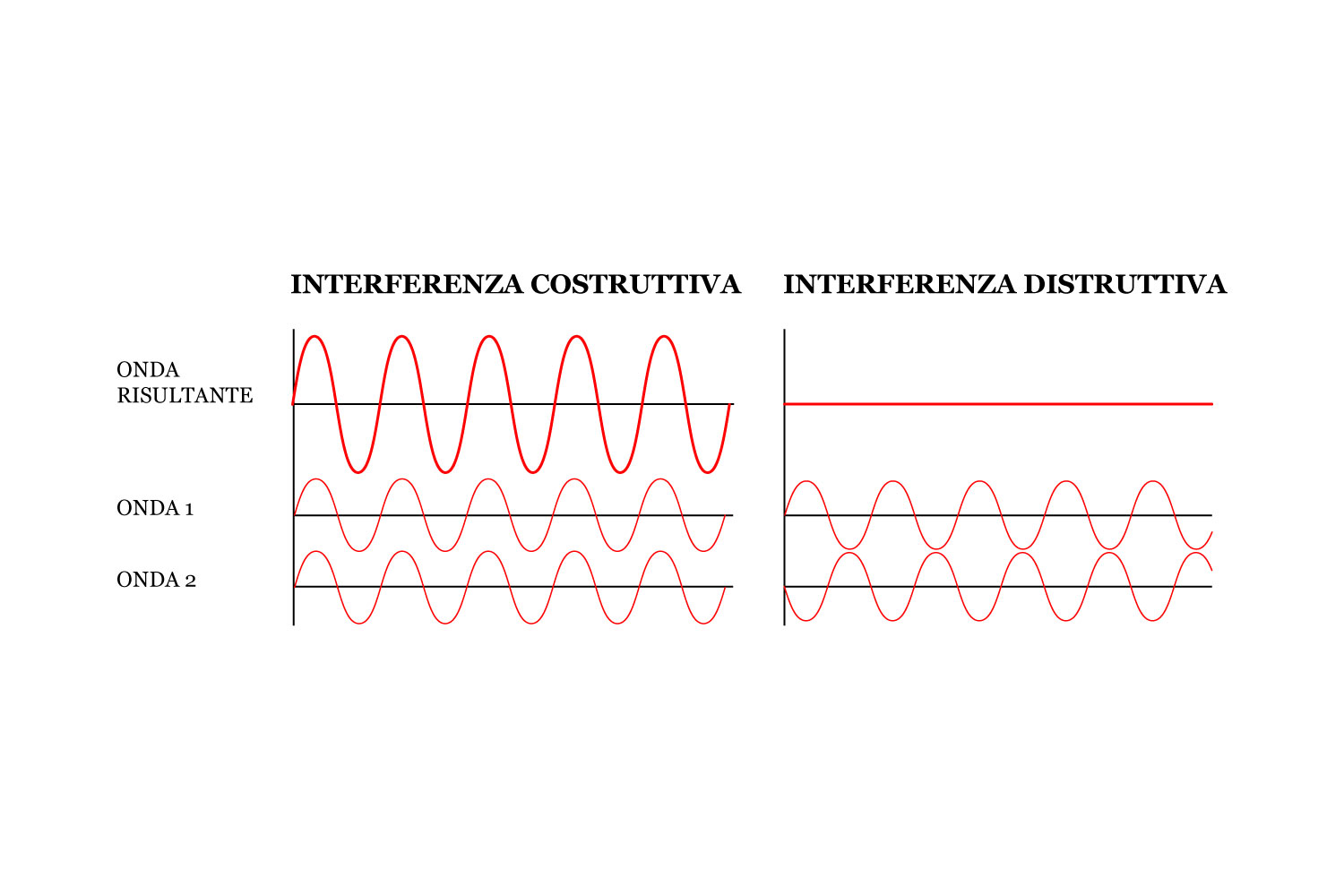 - interferenza distruttiva si ha quando le onde si sottraggono perché sono in opposizione di fase.