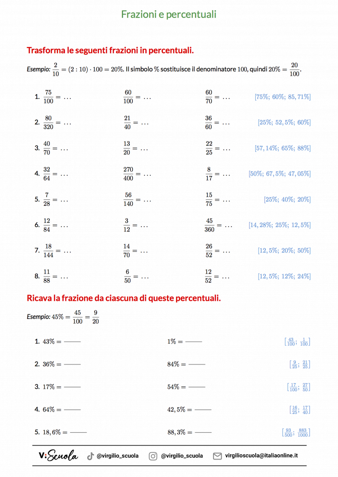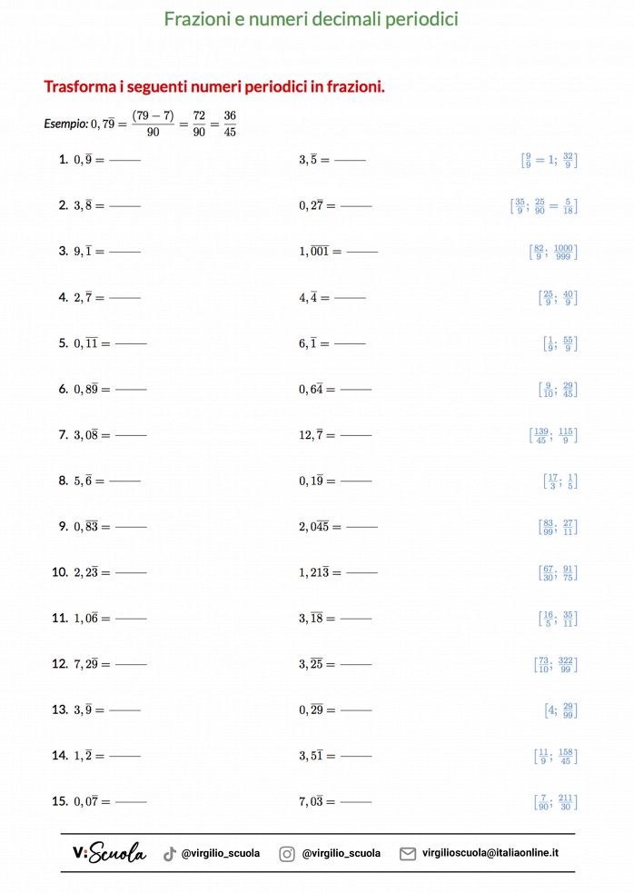 Alla fine di questa lezione trovi anche tanti esercizi su come trasformare numeri decimali, percentuali e numeri periodici in frazioni.