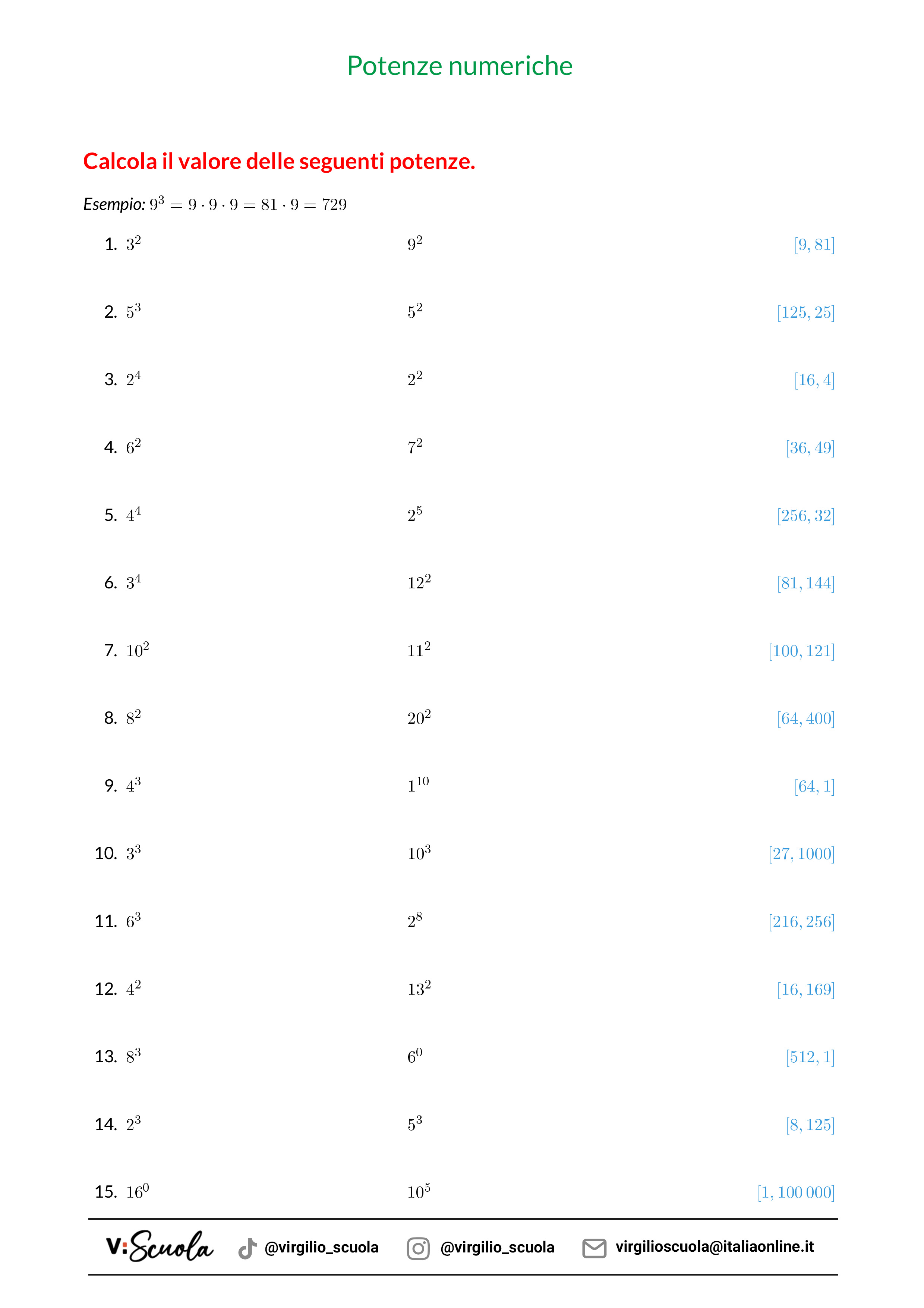 - Esercizi da svolgere sulle potenze
