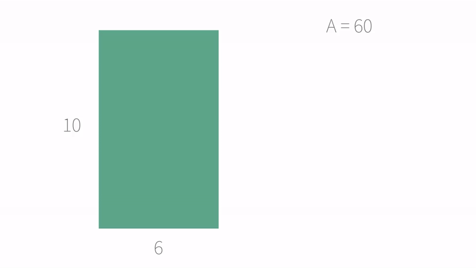 Esempio: la formula per trovare l’area del rettangolo è £$A=b\cdot h$£. Se l’area è fissa e vale £$A= 48 \text{ cm}^2$£, la base £$b$£ e l’altezza £$h$£ sono inversamente proporzionali. Infatti il loro prodotto è costante ed è uguale a £$48$£ (coefficiente di proporzionalità inversa) e possiamo scrivere £$b \cdot h = 48$£.