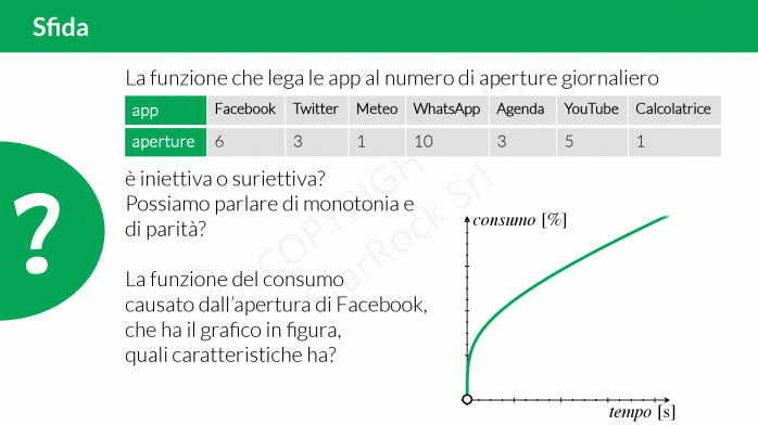 Quali sono le proprietà della funzione che associa a ogni app del tuo smartphone il numero di aperture giornaliere? È iniettiva? Magari è suriettiva?