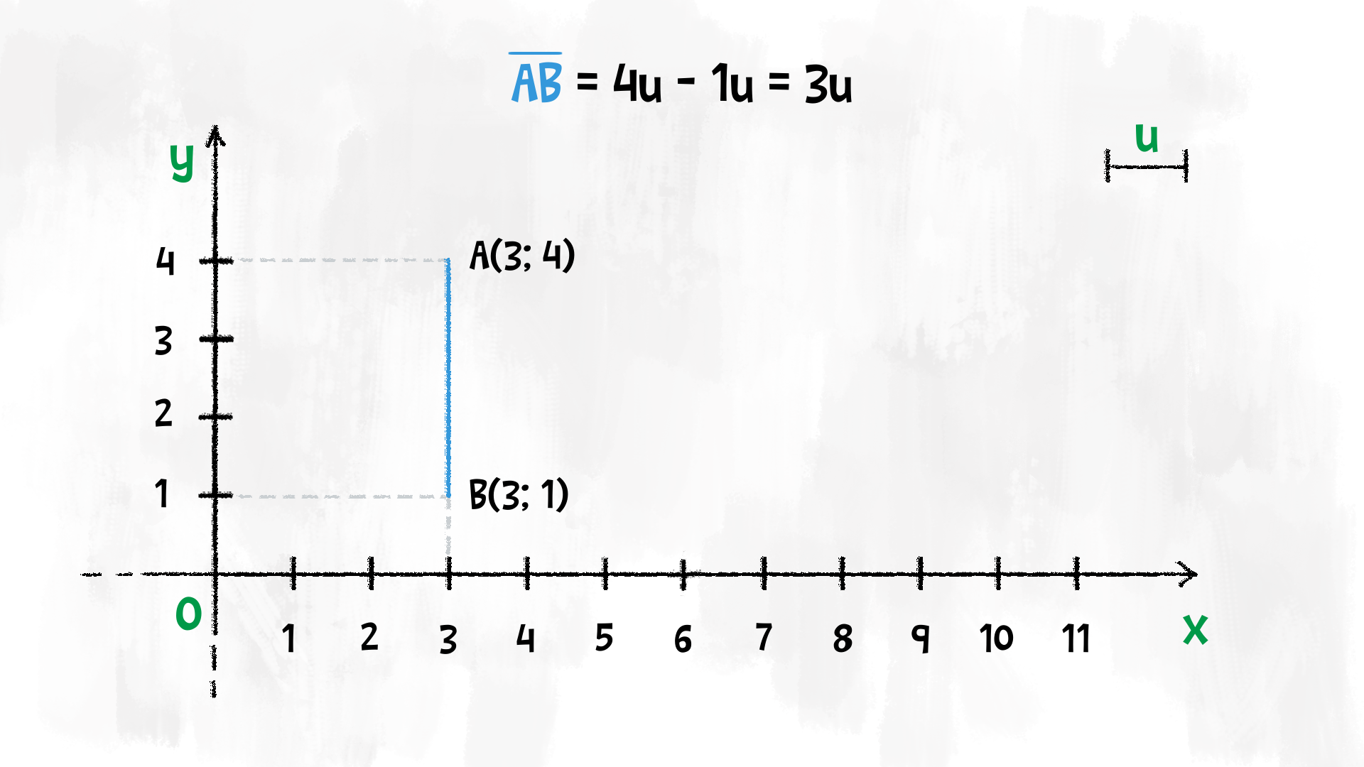 Possiamo calcolare la lunghezza di un segmento verticale £$\overline{AB}$£ con un semplice differenza tra le ordinate.