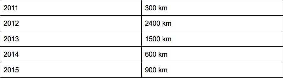 Infatti nel £$2012$£ Andrea ha percorso £$2400\text{ km}$£ e il rettangolo corrispondente è lungo 8 unità: £$8\cdot300\text{ km}=2400\text{ km}$£!