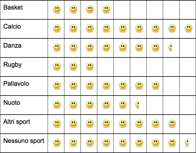 chiave di lettura dell’ideogramma. Senza questa chiave di lettura non sarebbe possibile sapere quanti studenti praticano ciascuno sport e l’ideogramma sarebbe incompleto. Ricorda sempre di specificare qual è la chiave di lettura quando costruisci un ideogramma!