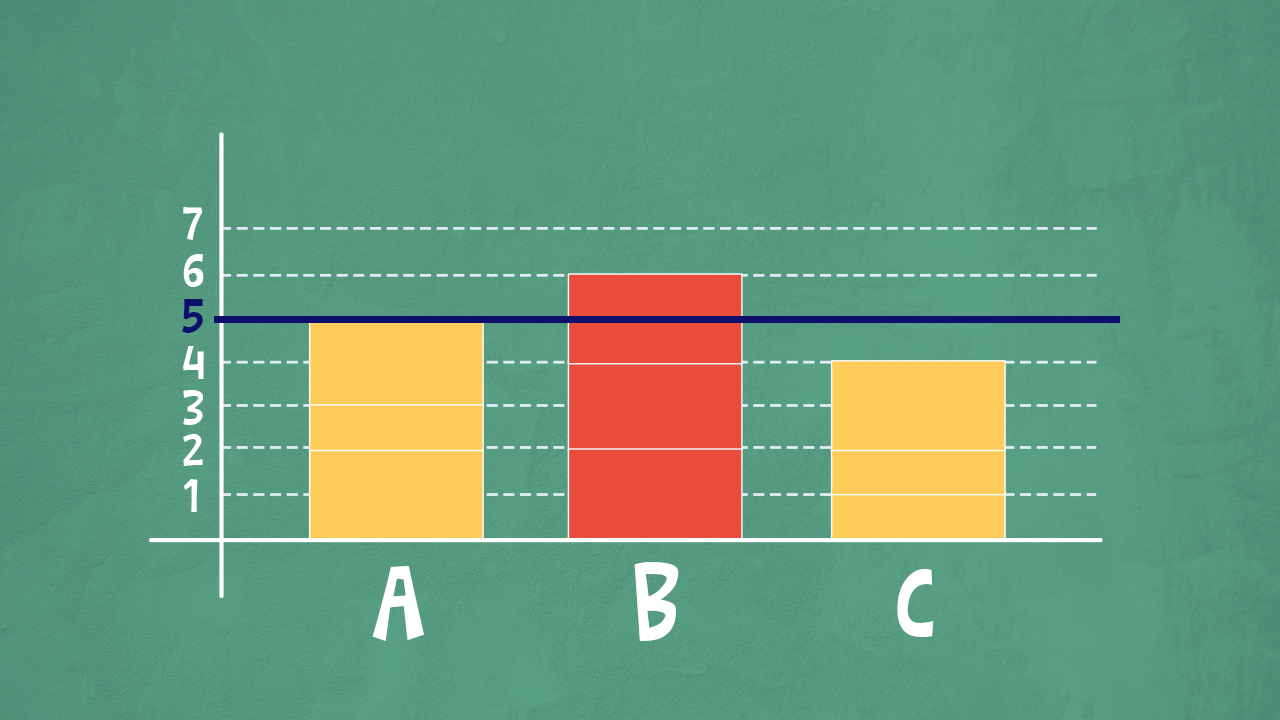 Rappresentando graficamente i dati su un istogramma, possiamo notare, tracciando una linea orizzontale in corrispondenza del valore della media aritmetica, che i dati stanno un po’ sopra e un po’ sotto la media.