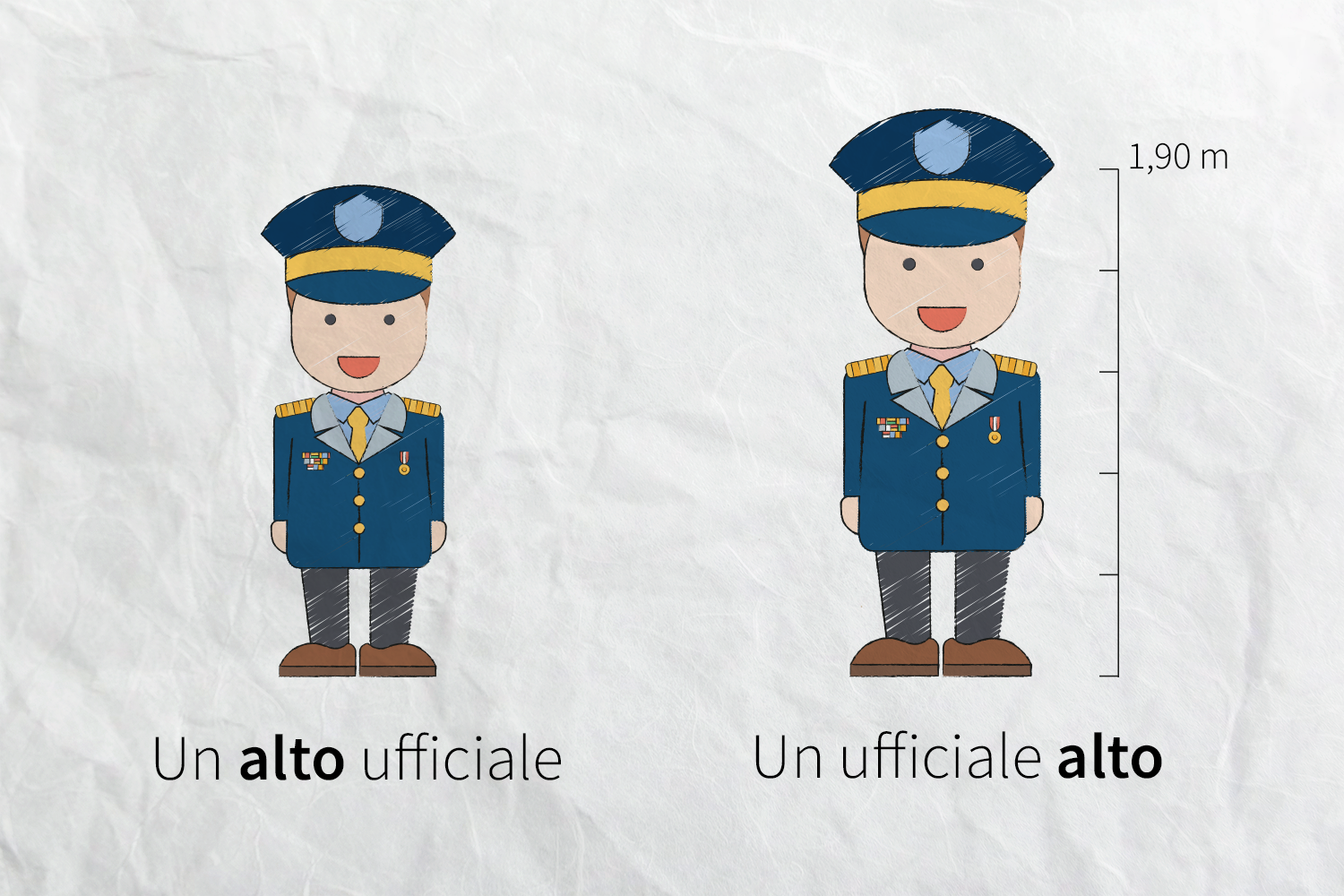 Un alto ufficiale è un grado della gerarchia militare, un ufficiale alto è di elevata statura.