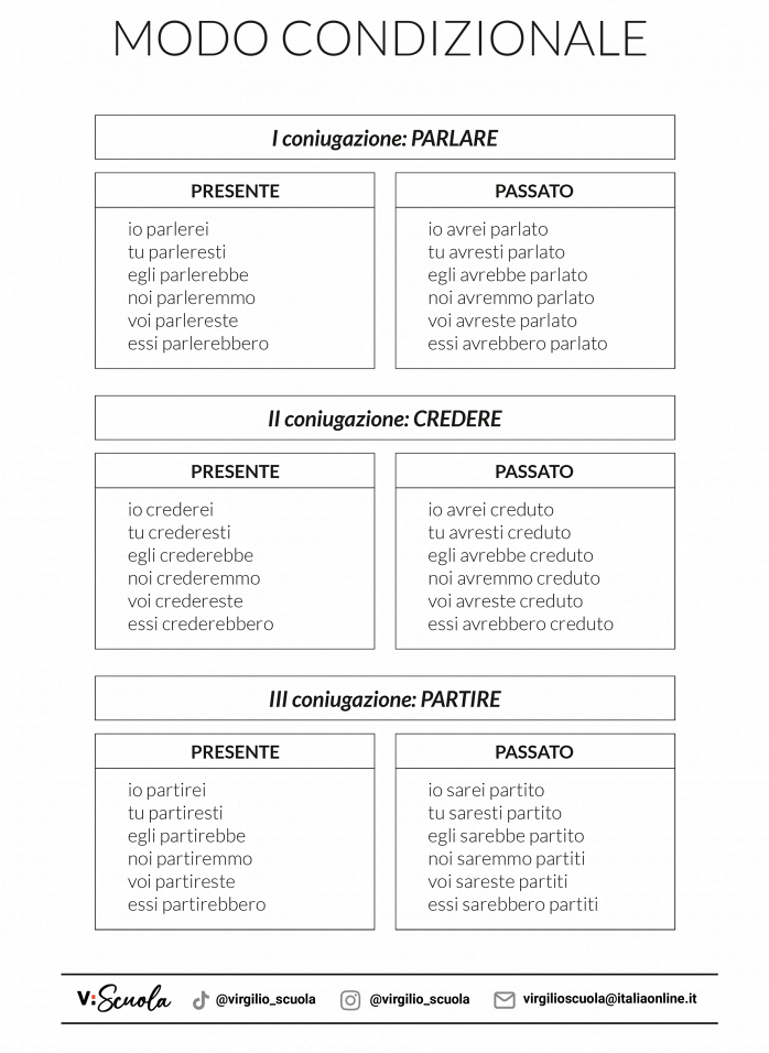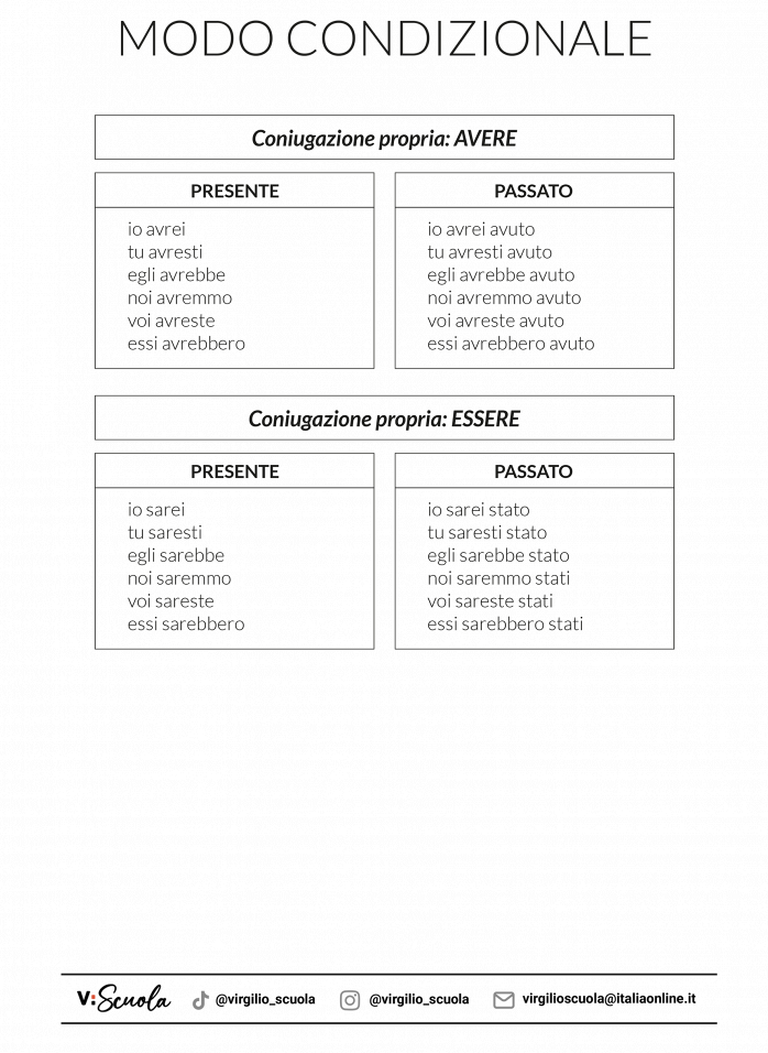 Le tabelle del condizionale 28 Luglio 2023 - Ultimo Aggiornamento: 4 Dicembre 2023 Medie Morfologia Le tabelle del condizionale