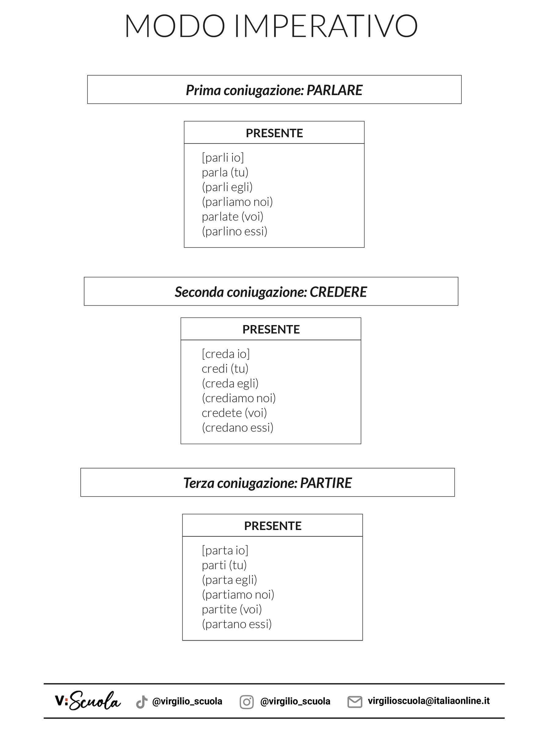 Scarica la scheda per studiare la coniugazione attiva dell’imperativo:
