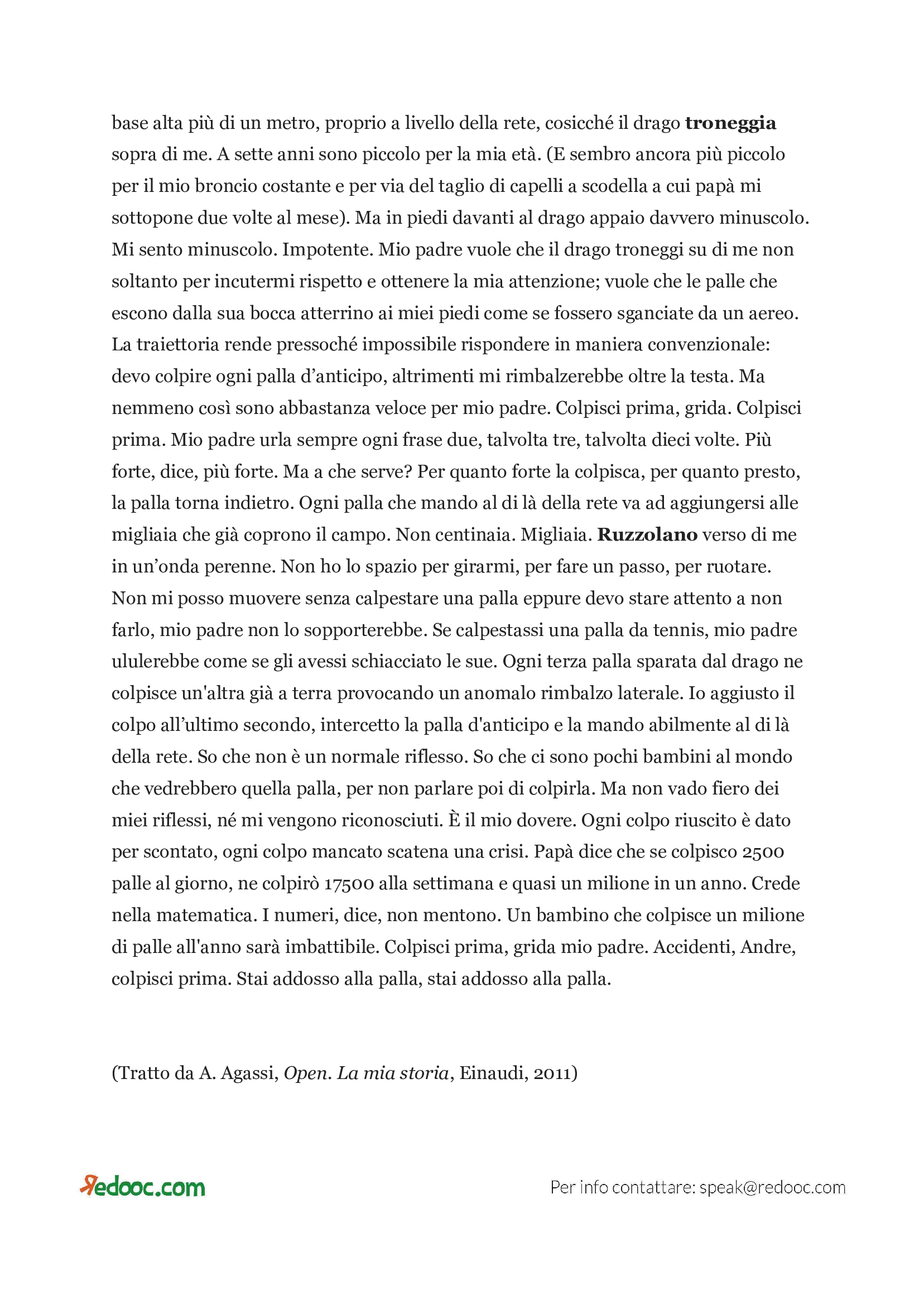 Testo per la comprensione: Open di Andre Agassi