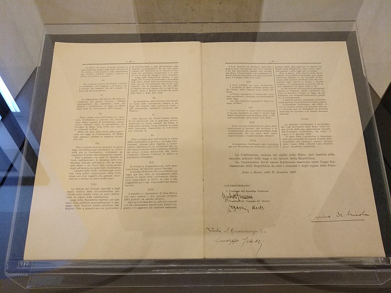 La Costituzione italiana, per esempio, entrata in vigore nel 1948, contiene: