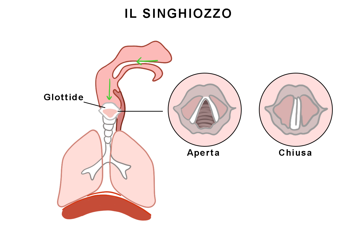- il singhiozzo, dato dall’attività del nervo frenico che viene irritato da rapida o eccessiva ingestione di cibi o bevande a temperature estreme oppure da stress che fa ingoiare aria;
