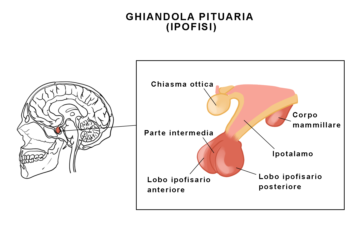 L’ipofisi è la ghiandola principale del sistema endocrino ed è situata alla base dell’encefalo. È costituita da due parti: il lobo posteriore e il lobo anteriore.