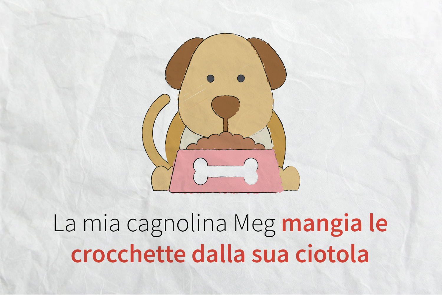 Nella frase di prima, quindi, “mangia le crocchette dalla sua ciotola" è il gruppo del predicato, di cui fanno parte il complemento oggetto e il complemento di origine o provenienza.