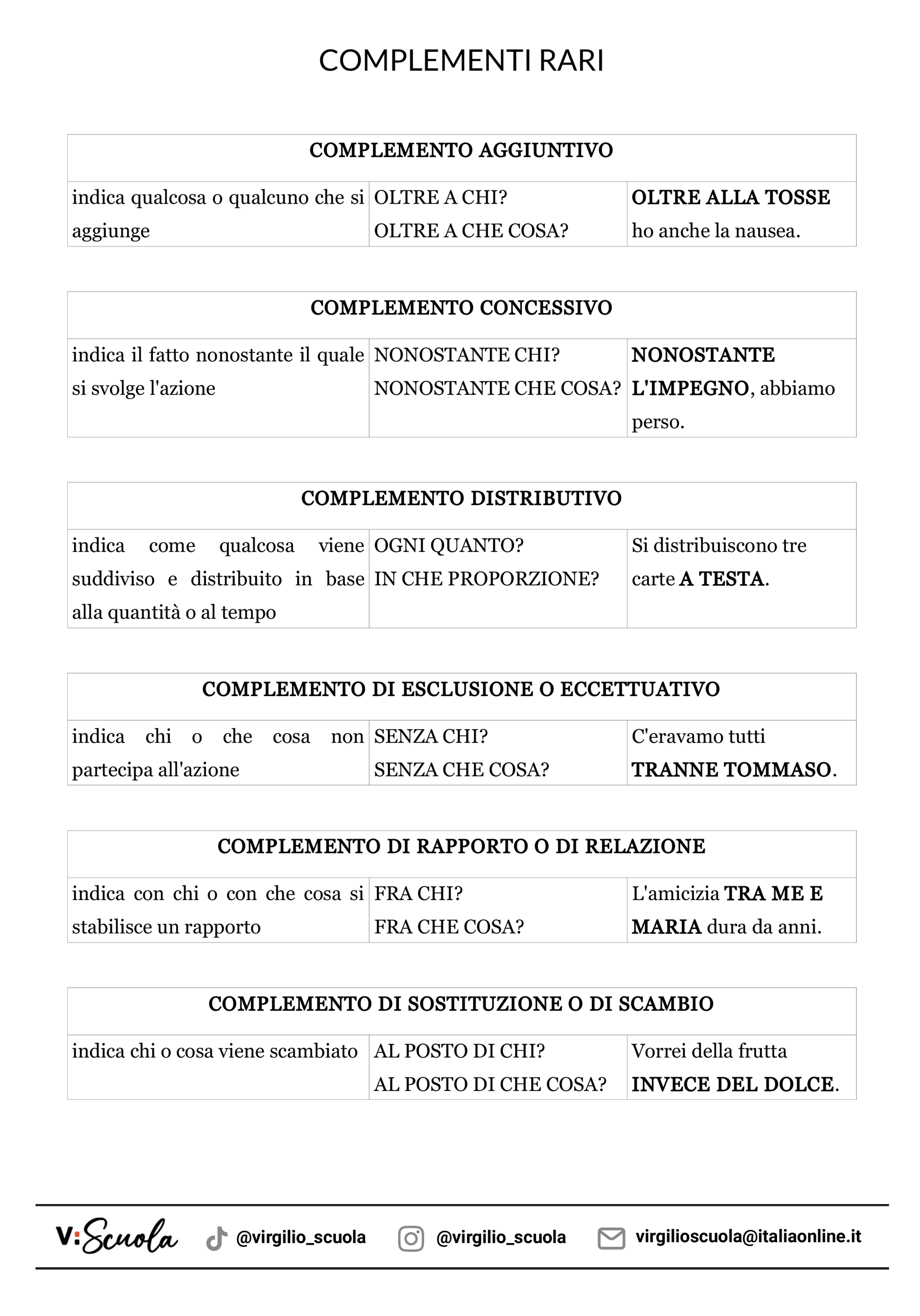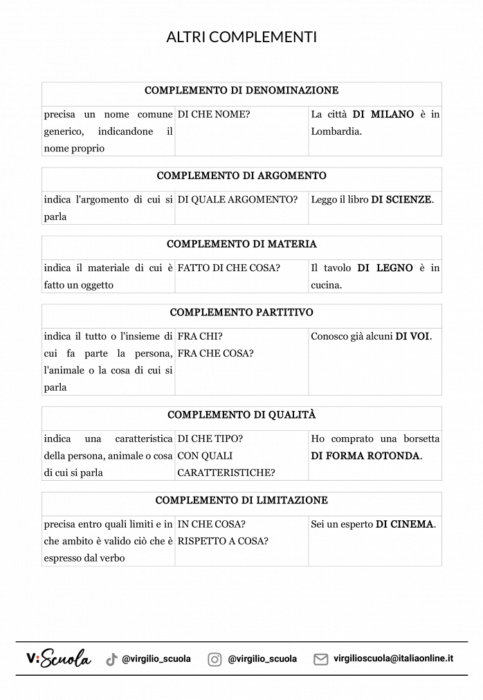 I complementi che trovi nella scheda sono usati raramente. Sono: