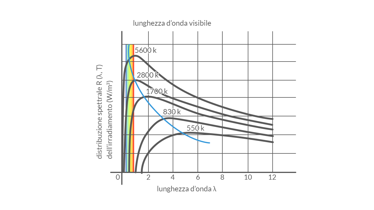 Gli esperimenti e i dati ottenuti avevano permesso di realizzare un grafico lunghezza d’onda-distribuzione spettrale dell’irradiamento del corpo nero che evidenziava la dipendenza della lunghezza d’onda unicamente dalla temperatura.