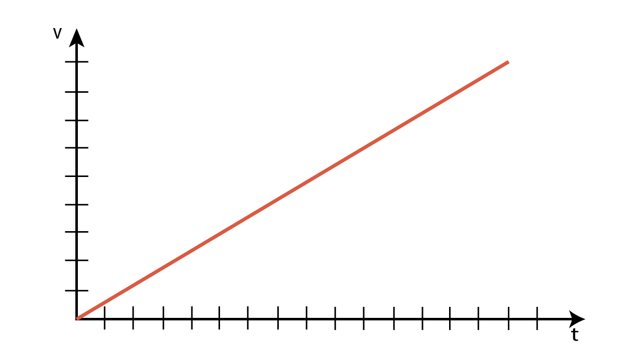 Se, invece, mettiamo la velocità sulle ordinate troveremo una retta. Infatti l’accelerazione si trova facendo il rapporto £$\frac{\Delta{v}}{\Delta{t}}$£, quindi l’equazione di questa retta è