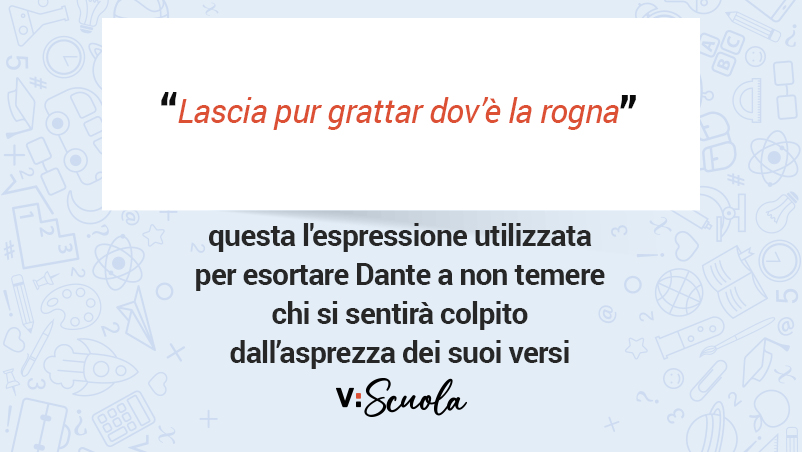 A questo punto, l’anima fornisce al poeta la risposta definitiva, riassunta dalla proverbiale espressione “lascia pur grattar dov’è la rogna”, esortandolo a non temere chi si sentirà colpito dall’asprezza dei suoi versi, perché si tratterà di chi ha la coscienza sporca e ove non l’avesse, la metabolizzerà, traendone nutrimento vitale. Le sue verità saranno come il vento che colpisce maggiormente le cime più alte degli alberi e ciò per lui dovrà essere motivo di vanto, d’altro canto se nel suo lungo viaggio gli sono state presentate solamente anime di persone famose, è perché altrimenti le sue parole resterebbero inascoltate da chi non presta attenzione né fede ad esempi che abbiano un fondamento sconosciuto e nascosto o ad altre argomentazioni che non siano di per sé evidenti.
