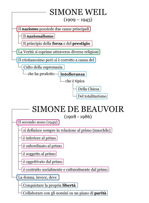 Mappa mentale su Simone Weil e Simone de Beauvoir