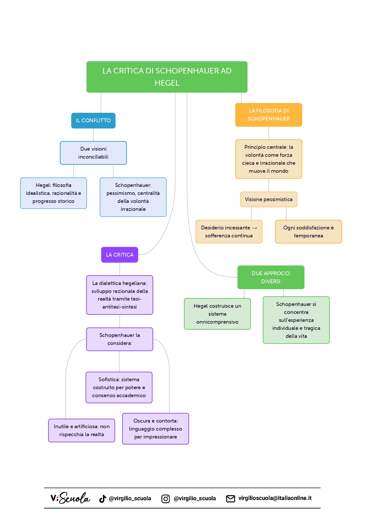 Uno dei principali bersagli della critica di Schopenhauer è il metodo dialettico di Hegel. Quest’ultimo, attraverso la dialettica, cerca di descrivere lo sviluppo della realtà e del pensiero come un processo razionale e teleologico, in cui ogni opposizione conduce a una sintesi superiore.