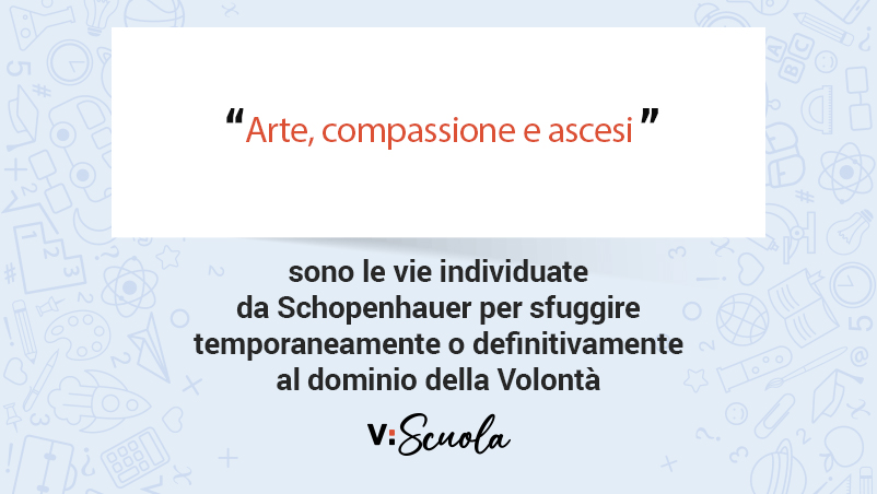 - Se la Volontà è la fonte di ogni sofferenza, la soluzione consiste nel superarla. Schopenhauer individua diverse vie per sfuggire temporaneamente o definitivamente al dominio della Volontà: