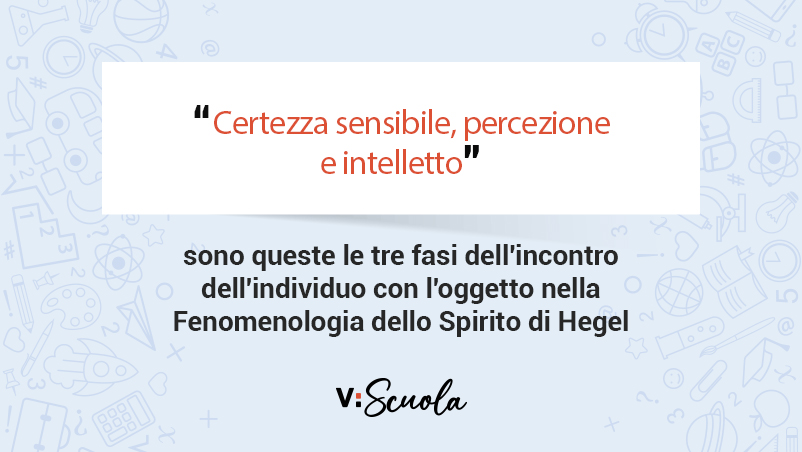 ‘Fenomenologia dello Spirito’ è un’opera filosofica – tra le più complesse di sempre – pubblicata nel 1807 in cui Hegel descrisse il percorso che ogni individuo deve compiere, partendo dalla propria coscienza, per identificare le manifestazioni attraverso le quali lo spirito si innalza dalle forme più semplici di conoscenza a quelle più generali fino al sapere assoluto. Il filosofo tedesco sviluppò al suo interno il tema della risoluzione del finito nell’infinito, spiegando come l’approccio alla filosofia debba iniziare con l’esplorazione dei “fenomeni” (che si presentano a noi nell’esperienza conscia) quale mezzo per cogliere lo Spirito Assoluto, che è dietro il fenomeno: ecco perché quella hegeliana è detta “fenomenologia dialettica”, intesa come una scienza dell’esperienza della coscienza, una sorta di storia romanzata dello Spirito che, tra errori, contrasti, infelicità e dolore, esce dalla sua individualità e si riconosce come ragione che è realtà e viceversa: quindi, a partire dalle forme più semplici della coscienza individuale, perviene gradualmente e progressivamente al sapere assoluto (dal conoscere finito al conoscere infinito). Il percorso della coscienza è da intendere come un movimento dialettico immanente alla coscienza, che non è qualcosa di imposto arbitrariamente dall’esterno, ma che anzi, mossa da questa necessità interna, essa riconosce, volta per volta, l’inadeguatezza del proprio punto di vista. Il momento da cui inizia la consapevolezza di sé (coscienza) è rappresentato dall’incontro dell’individuo con l’oggetto, perché è proprio attraverso il confronto sensibile con gli oggetti che ci rendiamo conto della nostra esistenza. Dopo le tre fasi dell’incontro – certezza sensibile (si è certi che esista l’oggetto rivelato dai sensi, in un dato luogo e in un certo momento), percezione sensibile (le diverse proprietà degli oggetti possono essere riportate a un unico punto di riferimento che permetta di avere una visione unitaria della realtà) e intelletto (dobbiamo pensare che l’unità non stia nell’oggetto, ma nel soggetto che unifica le sensazioni) – la coscienza ha interiorizzato l’oggetto in se stessa ed è diventata, quindi, coscienza di sé, ovvero autocoscienza che non ha più bisogno di riferirsi agli oggetti per avere coscienza di sé, ma ha capito che la certezza della propria esistenza è data dalla sua attività intellettuale.