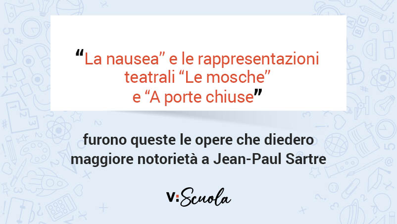 Sartre è stato un autore poliedrico, scrivendo diversi generi letterari, componendo per il teatro e realizzando contenuti puramente filosofici. Le sue opere principali sono “L’essere e il nulla”, “L’esistenzialismo è un umanismo” e la “Critica della ragione dialettica”, ma a dargli la notorietà sono il romanzo “La nausea” e le rappresentazioni teatrali “Le mosche” e “A porte chiuse”.