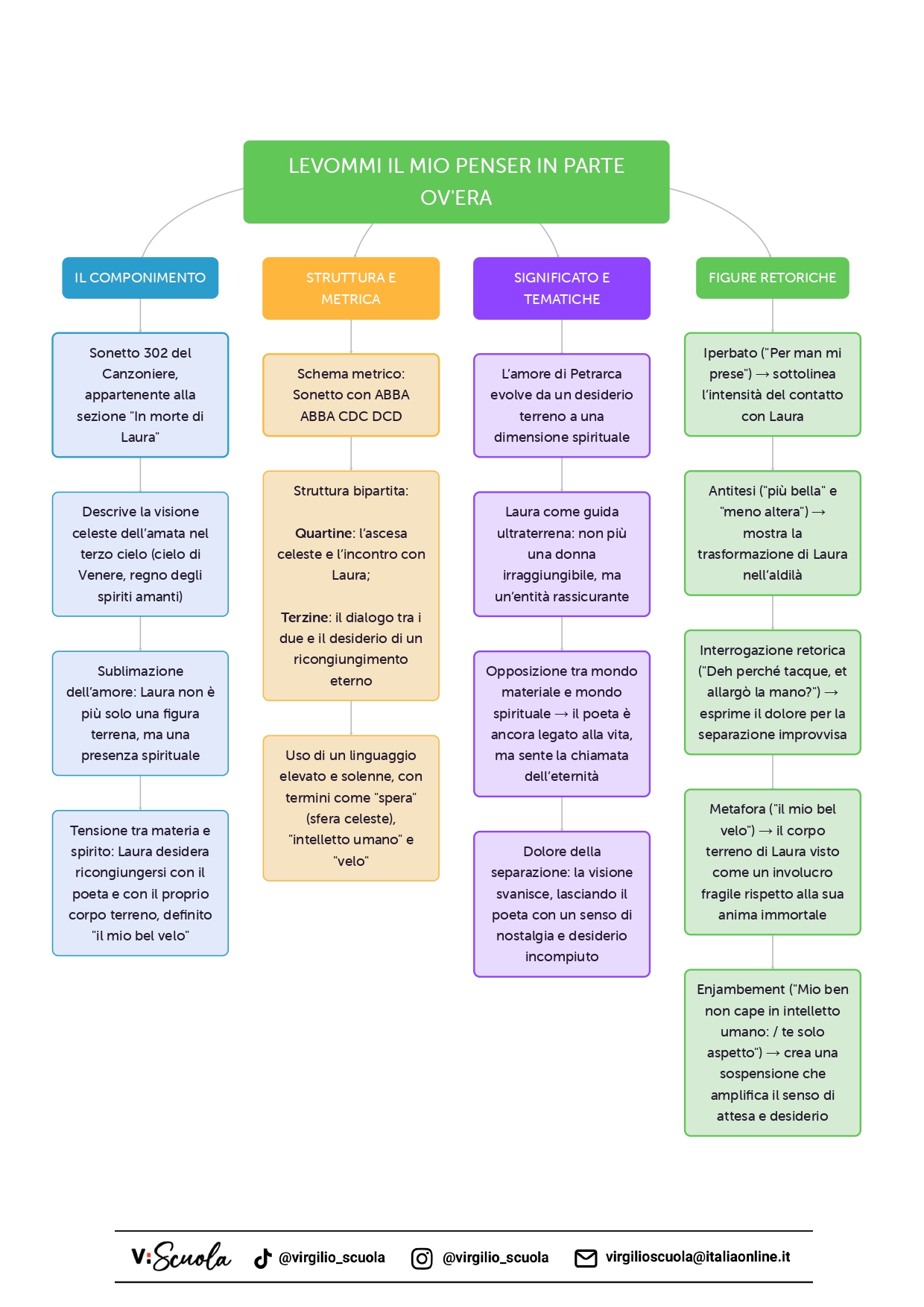 Attraverso l’uso sapiente di queste figure retoriche, Petrarca costruisce un sonetto di grande raffinatezza espressiva, in cui la dimensione terrena e quella ultraterrena si intrecciano, dando vita a una poesia che racchiude il senso più profondo del suo amore per Laura: un legame che supera il tempo e la morte, trasformandosi in un’attesa spirituale che si compirà solo nell’eternità.