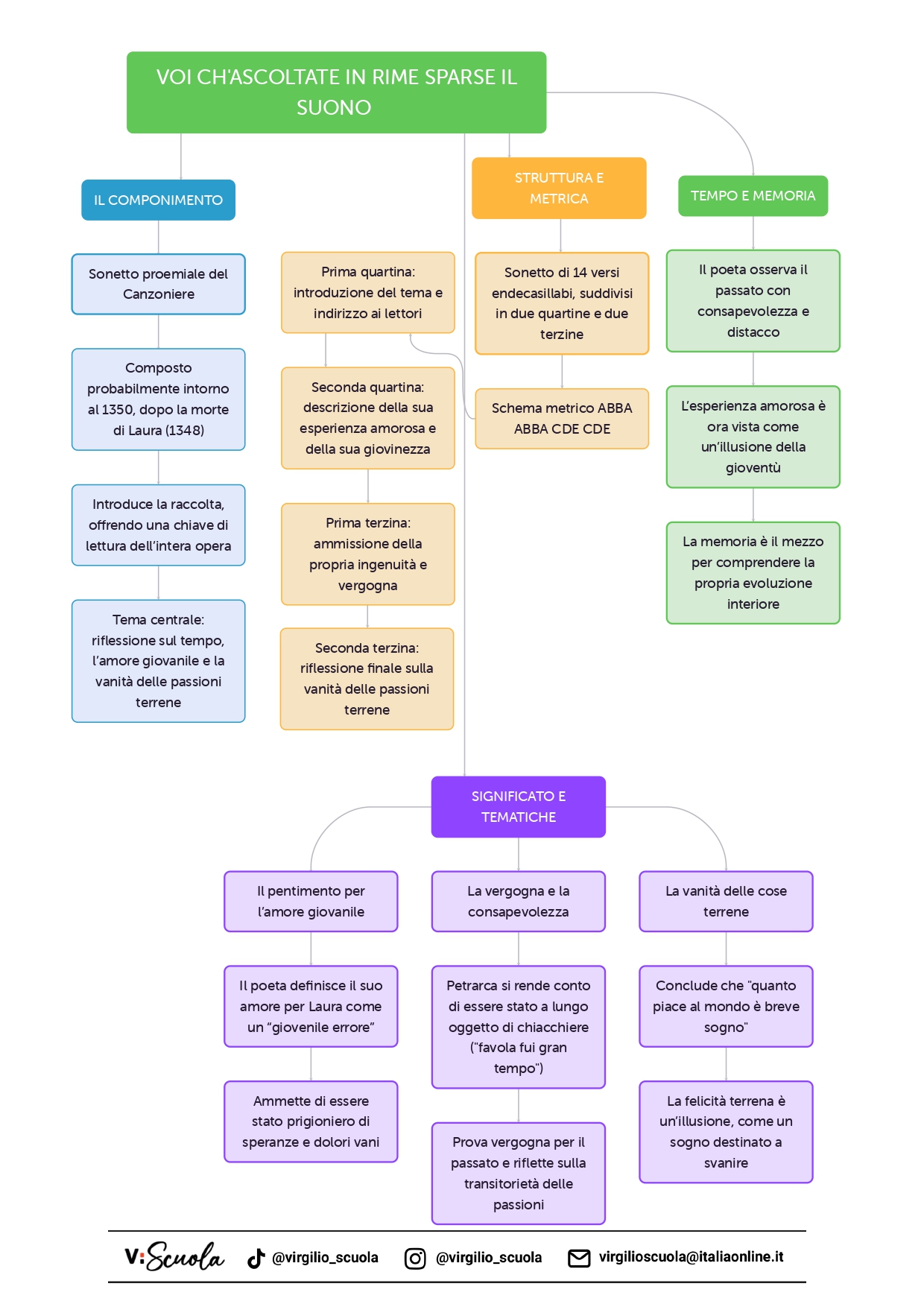 Il sonetto “Voi ch’ascoltate in rime sparse il suono" funge da proemio al “Canzoniere" di Petrarca, una raccolta di 366 componimenti poetici, principalmente sonetti, che narrano l’amore del poeta per Laura. Sebbene posto all’inizio dell’opera, questo sonetto fu composto successivamente, probabilmente intorno al 1350, dopo la morte di Laura avvenuta nel 1348. La scelta di collocarlo come introduzione riflette l’intento di Petrarca di presentare una riflessione matura sulla sua esperienza amorosa, offrendo al lettore una chiave interpretativa per l’intera raccolta.
