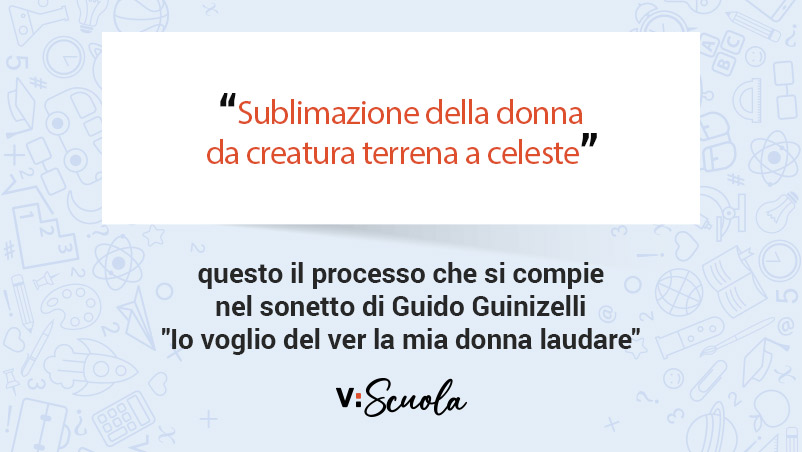 In questo sonetto Guido Guinizelli dedica alla propria amata lodi sperticate e intense parole d’amore. Si tratta di una donna di straordinaria bellezza, così ricca di qualità morali da non suscitare altro che gioia e bontà negli occhi e nel cuore di chi l’ammira. È vista come ispiratrice e purificatrice dell’amore stesso, al punto che la sua apparizione genera effetti pressoché miracolosi: sarebbe infatti in grado di convertire gli infedeli e di scacciare malesseri e cattivi pensieri. In altre parole, si compie il processo di sublimazione della donna – da creatura terrena a celeste – tipica della poetica stilnovistica.