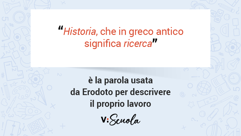 La parola greca usata da Erodoto per descrivere il proprio lavoro è “historia”, che in greco antico significa “ricerca” e che solo in seguito assumerà il significato odierno. Nel proemio dell’opera, l’autore enuncia gli obiettivi della sua opera, conservare la memoria e individuare le cause di alcuni avvenimenti.