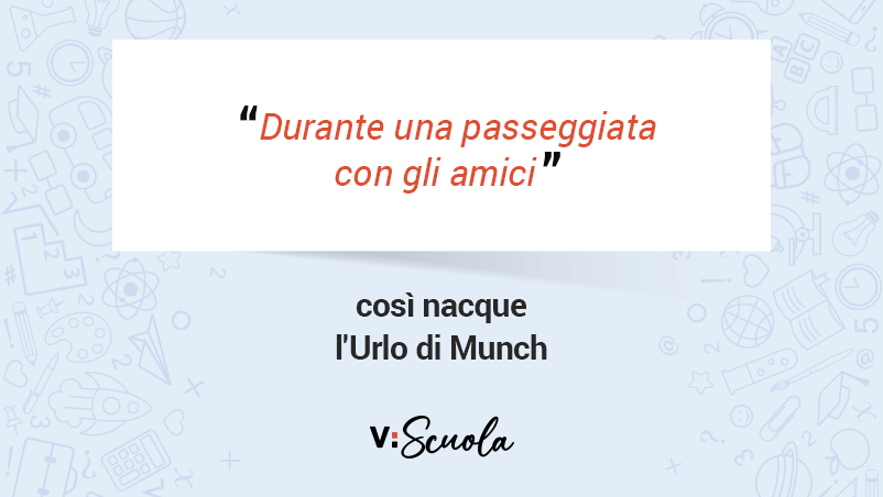 “Camminavo lungo la strada con due amici quando il sole tramontò, il cielo si tinse all’improvviso di rosso sangue, mi fermai, mi appoggiai stanco morto a un recinto sul fiordo nerazzurro e sulla città c’erano sangue e lingue di fuoco. I miei amici continuavano a camminare e io tremavo ancora di paura e sentivo che un grande urlo infinito pervadeva la natura”