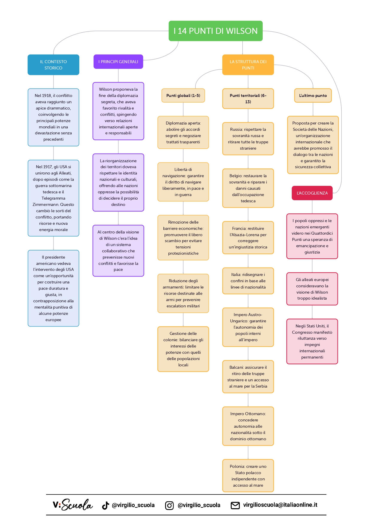 L’8 gennaio 1918, Wilson presentò i suoi Quattordici Punti al Congresso degli Stati Uniti, delineando i principi fondamentali per un nuovo ordine internazionale. Questo discorso non solo definiva gli obiettivi di guerra degli Stati Uniti, ma proponeva anche un modello per una pace stabile, basata su trasparenza, autodeterminazione dei popoli e cooperazione internazionale. In un contesto segnato da distruzione e instabilità, i Quattordici Punti rappresentavano una speranza per un futuro più equo.