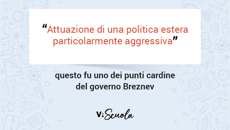 Già dal 1968 era in voga il termine ‘dottrina Breznev’. Si trattava, in altre parole, della politica estera attuata dal leader sovietico, particolarmente aggressiva – al punto da intervenire militarmente – nei confronti dei Paesi alleati del Patto di Varsavia i quali, di fatto, si trovavano in una condizione di sovranità limitata. Ne fu un esempio l’invasione della Cecoslovacchia che pose fine alla cosiddetta Primavera di Praga, cioè la liberalizzazione politica dal controllo dell’URSS perseguita da Alexander Dubček. Dopo un periodo di ‘avvicinamento’ all’Occidente, soprattutto con Francia e Germania, ma anche con gli accordi di Helsinki del 1975, già a partire dall’anno seguente, ritenendo che gli Stati Uniti stessero attraversando una fase di forte ridimensionamento, fece installare dei missili SS20 provvisti di testata nucleare nelle nazioni dell’Europa dell’Est: fu l’inizio dell’escalation nucleare, perché gli Usa replicarono con analoghe azioni nei Paesi alleati. Nel tentativo di ampliare la sfera d’influenza comunista nel mondo, a segnare una brusca rottura nei rapporti con i Paesi membri della Nato contribuirono anche il sostegno alle frange di estrema sinistra in Vietnam del Nord (oltre che in Medio Oriente, Angola ed Etiopia), l’invasione dell’Afghanistan del 1979 e la politica repressiva in Polonia nel 1981. Breznev ‘liberò’ la Jugoslavia dall’isolamento, tanto ideologico quanto politico, garantì agli Stati federati il diritto di libera secessione, che faciliterà la dissoluzione dell’Unione Sovietica, e cercò fino all’ultimo un approccio con la Cina finalizzato alla riapertura di alcuni negoziati. Del resto, i tre piani quinquennali varati – l’8° nel 1966, il 9° nel 1971 e il 10° nel 1976 – avevano mostrato un preoccupante rallentamento dell’economia del Paese. Molti studiosi, infatti, schematizzano la carriera politica di Breznev in due fasi: la prima, ‘positiva’, che ha contribuito ad un innalzamento del livello di vita della popolazione, e la seconda, quella della ‘stagnazione’, caratterizza da crisi produttiva e recessione. Già dal 1974 affetto da leucemia e carcinoma orale, oltre che di enfisema e di diversi disturbi cardiovascolari e circolatori, al punto da far continuamente correre voci circa una sua dipartita, Breznev per altri otto anni consolidò piuttosto il proprio potere, come dimostrano il successo nel XXV Congresso del partito, in cui fu nominato maresciallo dell’Unione Sovietica (1976), e la conferma alla presidenza del presidium del Soviet Supremo del 1977: per la prima volta nella storia il leader del partito e il Capo dello Stato erano la stessa persona. Un grave ictus lo colpì nel maggio del 1982, ma rifiutò di abbandonare le proprie cariche e mantenne gli incarichi fino al 10 novembre dello stesso anno, stroncato da un infarto. La sua morte fu annunciata simultaneamente da tv e radio alle 11 del mattino del giorno seguente, vennero indetti cinque giorni di lutto nazionale e subito dopo svolti i solenni funerali di Stato, alla presenza di 32 leader nazionali, 15 capi di Governo, 14 ministri degli Esteri e 4 principi. Breznev, invece, venne sepolto nella necropoli delle mura del Cremlino.