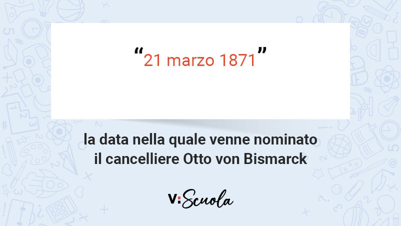 Dal 1871 primo Cancelliere della storia dell’Impero tedesco, fu l’artefice di un sistema di alleanze in grado di isolare Francia, di contenere le dispute austriache con Russia e Italia, di mettere in pericolo il primato economico del Regno Unito e di rendere l’esercito della Germania il più potente in Europa. Seppur promotore di riforme in campo assistenziale, Bismarck – in politica interna – contrastò in tutti i modi l’avanzata dei socialisti.