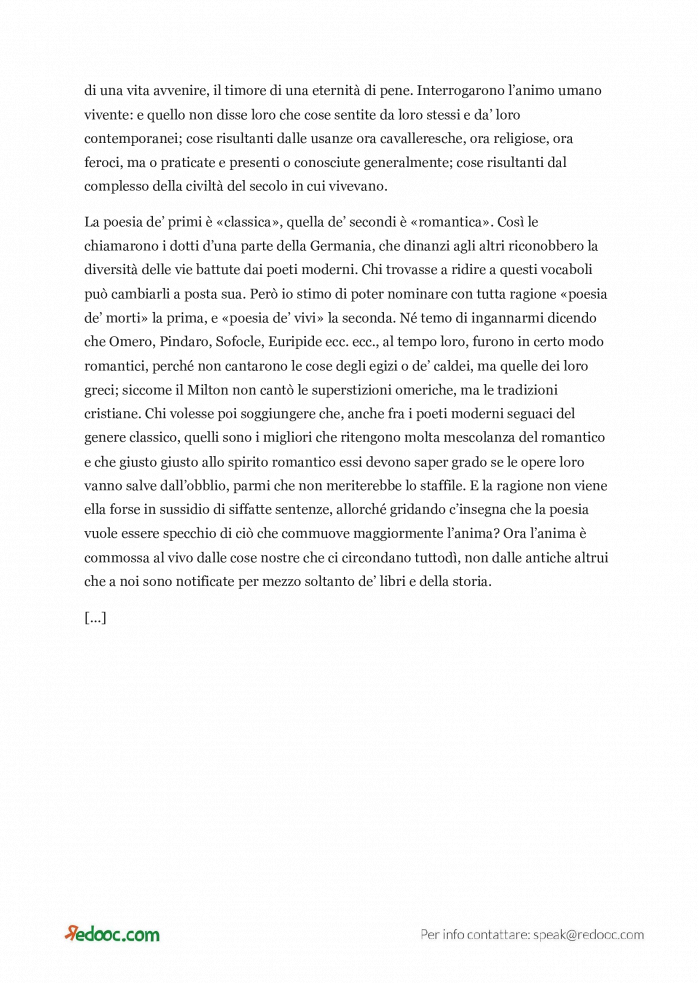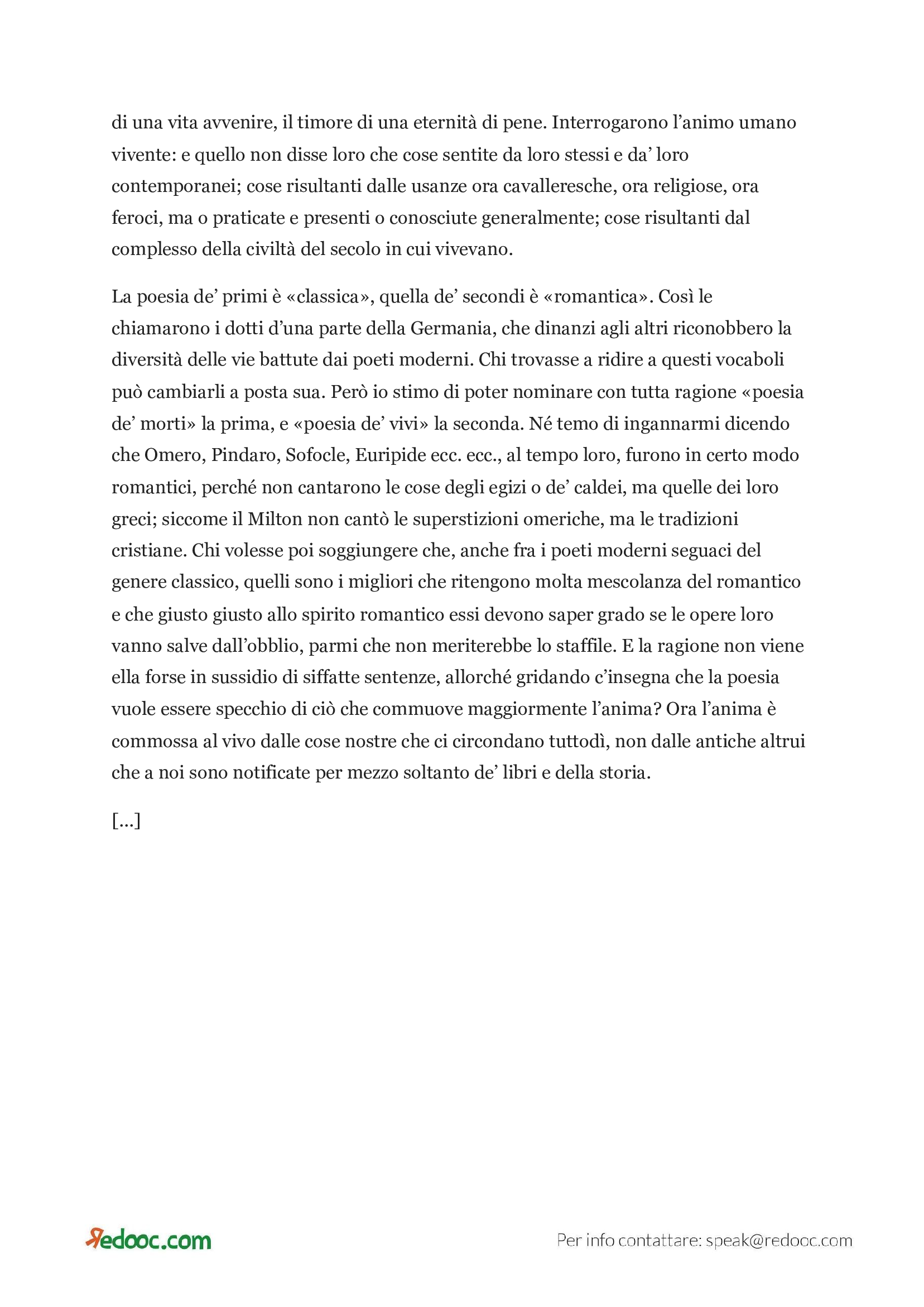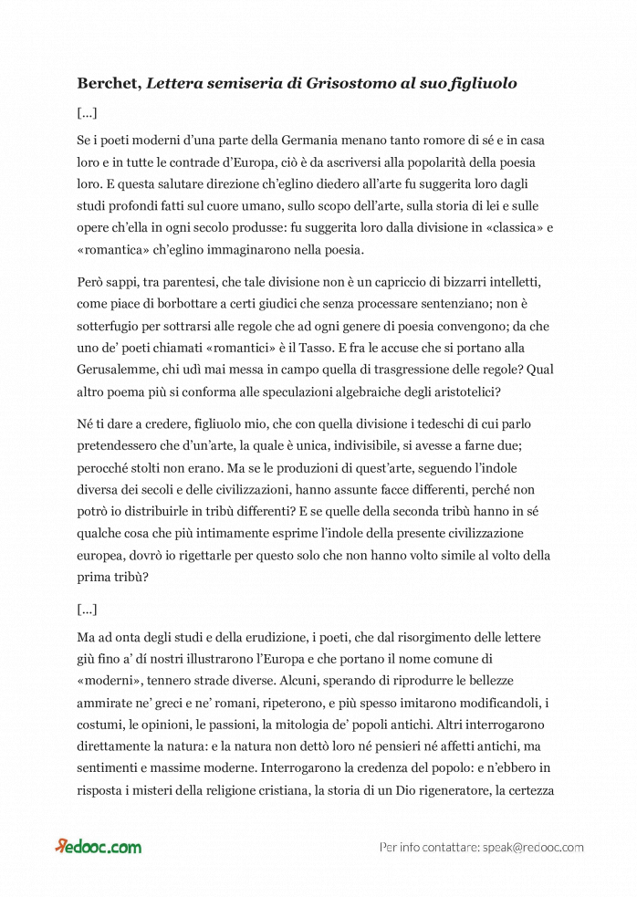 Berchet esprime le sue opinioni attraverso le parole di Grisostomo, che spiega al figlio collegiale le novità della poesia romantica e i motivi della sua supremazia. Se i classici prendono a modello gli antichi, i romantici traggono ispirazione direttamente dalla natura: per questo Berchet definisce la poesia classica “poesia dei morti" e quella romantica “poesia dei vivi", arrivando a sostenere che persino autori antichi come Omero, Pindaro, Sofocle ed Euripide ai loro tempi fossero romantici. Solo una poesia che parla del presente, infatti, può parlare alla nostra anima, contribuendo anche a creare una coscienza nazionale.
