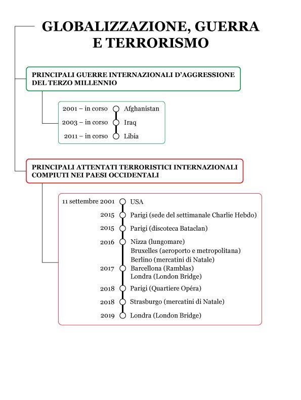 Per stampare la mappamentale con le guerre e gli attacchi terroristici principali dal 2000 ad oggi, scarica il pdf in bianco e nero qui: